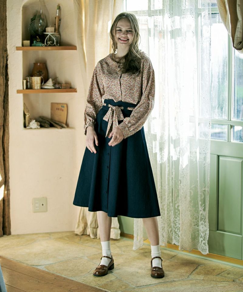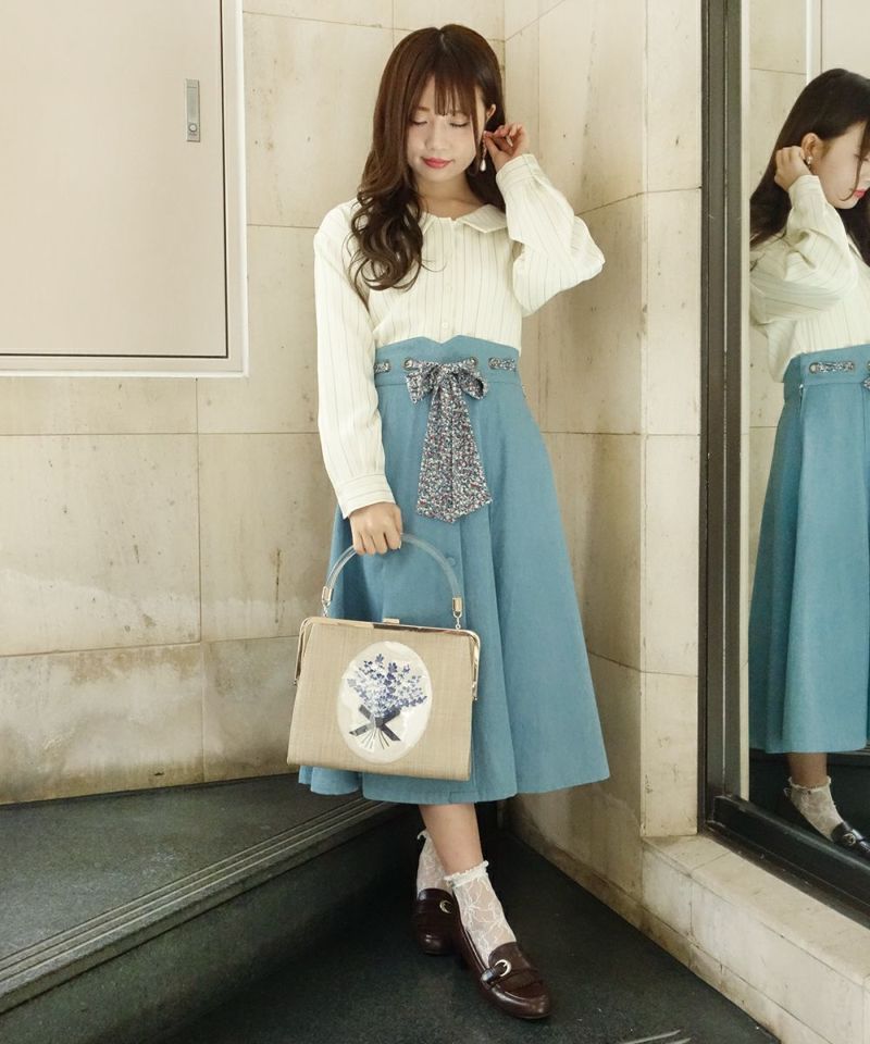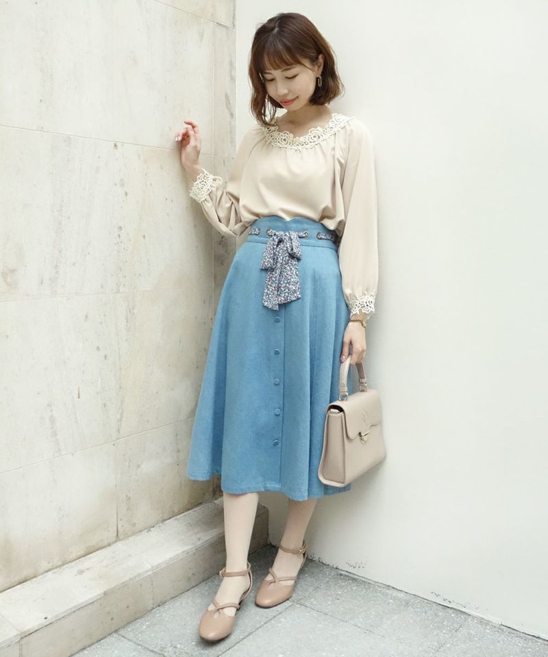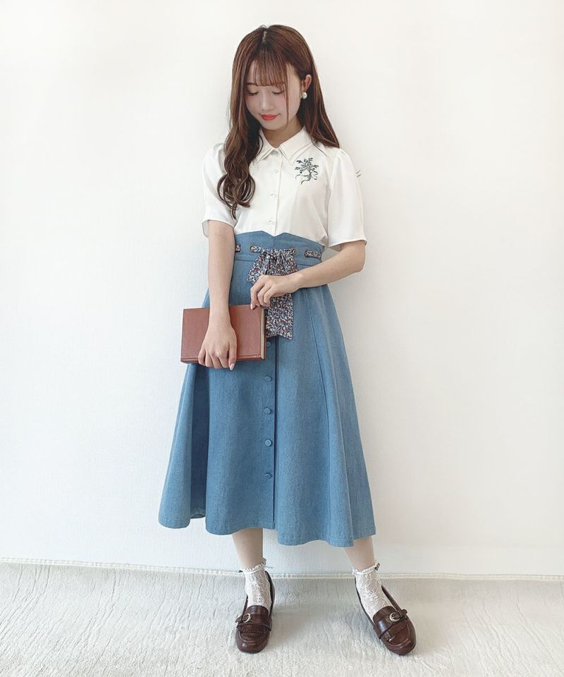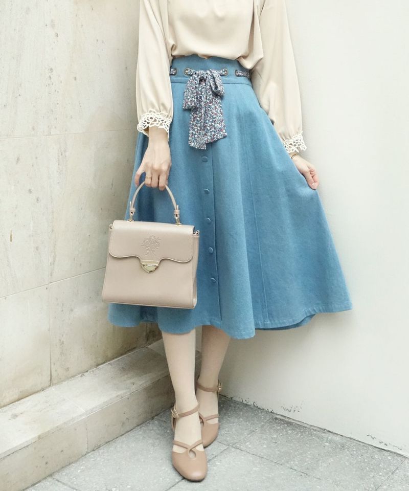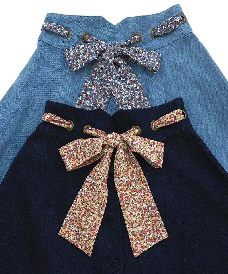 小花柄スカーフ付きデニムフレアースカート/F&A [33CG06p002]