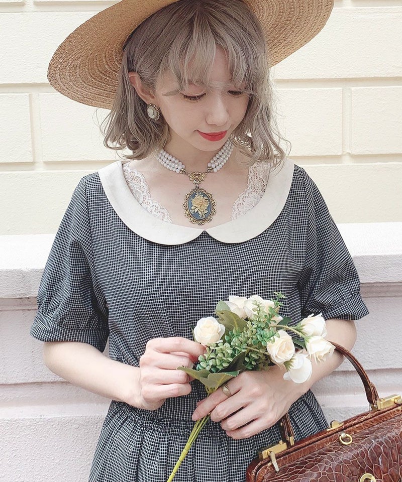 クレリック衿チェック柄ワンピース/an another angelus [34BE03h025]