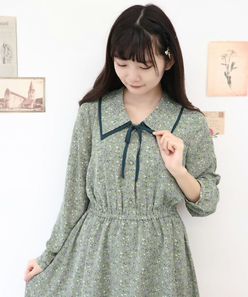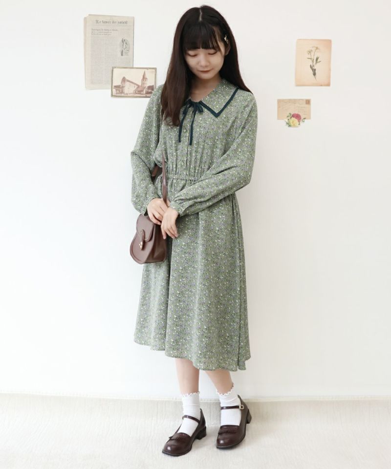 ダブルビッグカラー小花柄ワンピース/F i.n.t [35AE02j009]