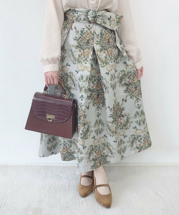 インテリアフラワー柄タックスカート/an another angelus [35BG03p004]