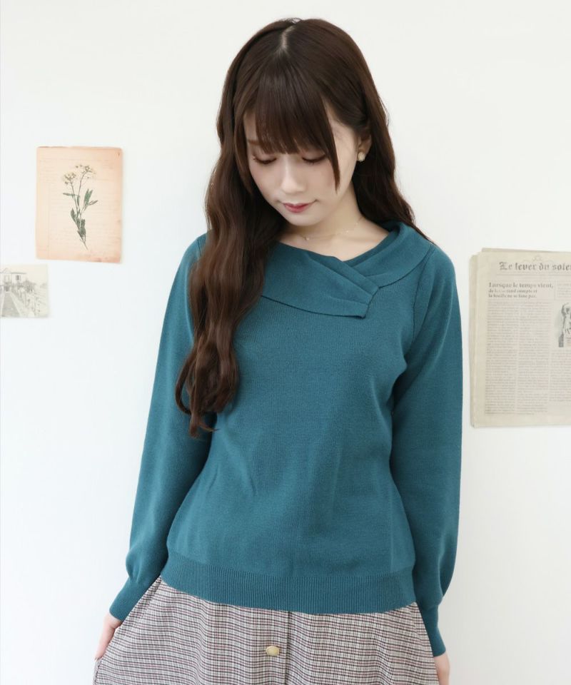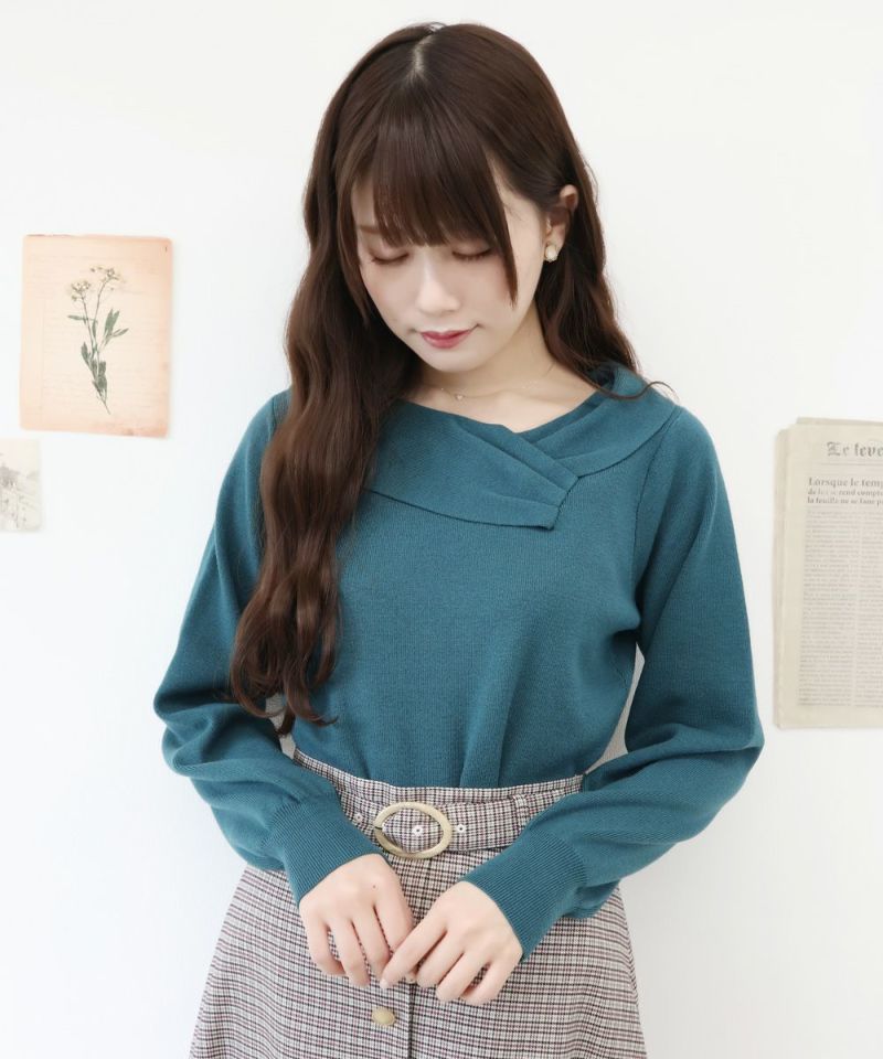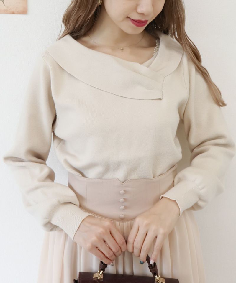 アシンメトリーロールカラーニットプルオーバー/an another angelus [35BJ03j003]