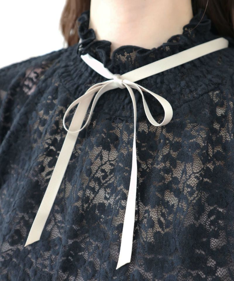 リボンタイ付き起毛総レーストップス/F&A [35CI01j002]