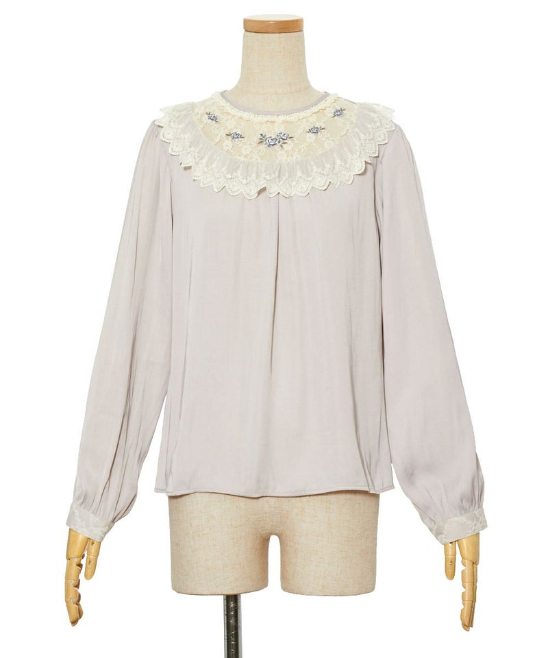 ローズ刺繍レースヨークプルオーバーブラウス/an another angelus [36BF02j011]
