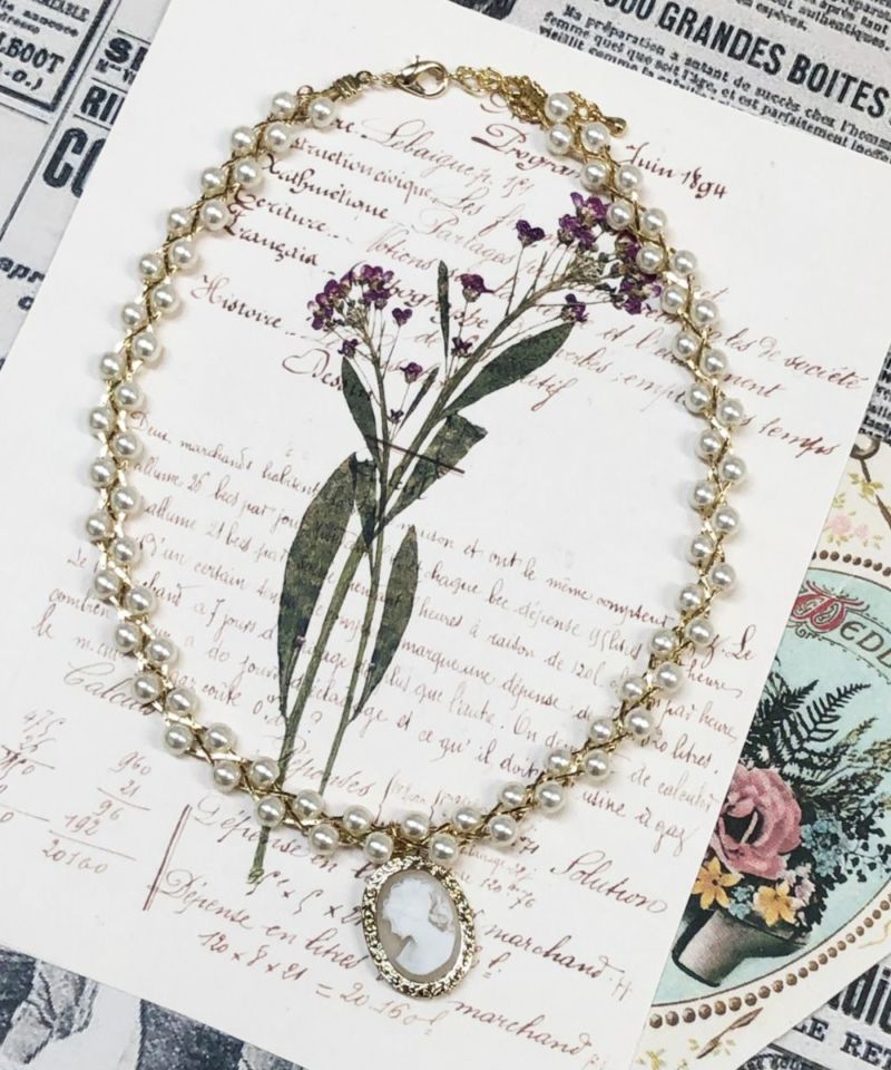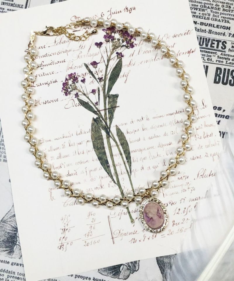 カメオ付きパールチョーカー/F&A [36CB02a014]