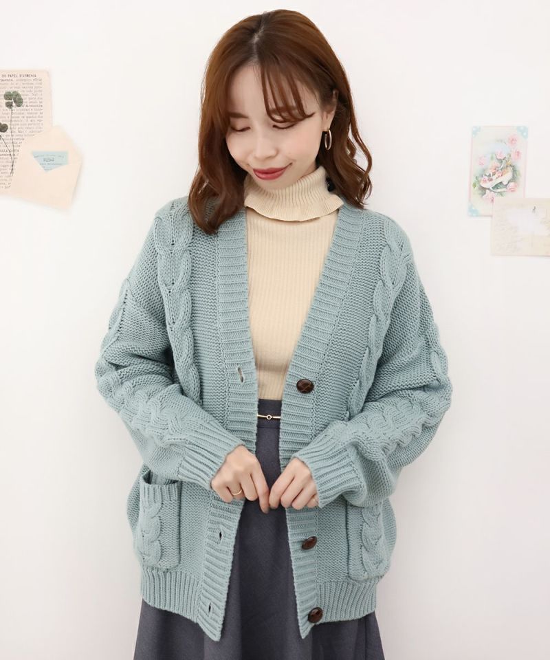ポケット付きケーブルニットカーディガン/F&A [36CJ04j011]
