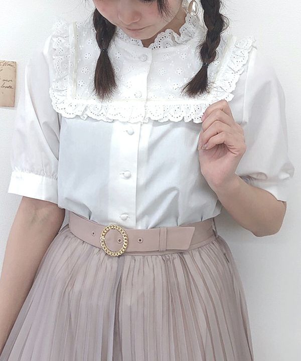 • BLACK×WHITEを購入しました!! ヨーク部分のコットンレースデザインの可愛さに一目惚れし、購入を決めました...! 私の購入した色はギンガムチェックに白いフリルが映え、1枚で主役級にかわいいです。 他の2色はシンプルで使いやすいため、甘すぎるのが苦手な方にもお使いいただけると思います! 後ろまでしっかりコットンレースがついているため、カーディガンとの重ね着で衿を出して着るのもおすすめです!!