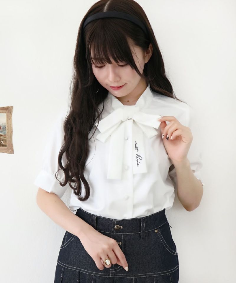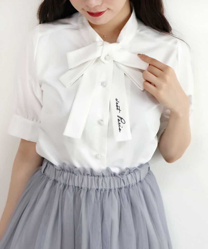 ロゴ刺繍ボウタイブラウス/F i.n.t [37AF02h012]