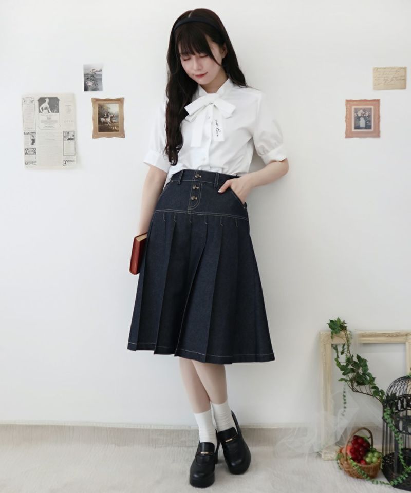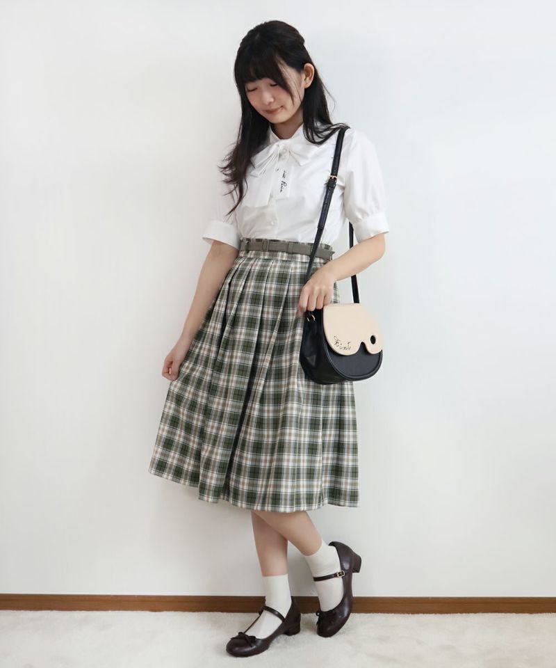 off whileを購入しました! リボンが珍しい形ですごく可愛いです。 シワになりにくそうな生地で、袖も少し長めなので着やすそうだなと思いました。 色々なお洋服に合わせやすそうなのでこれから着るのが楽しみです!!