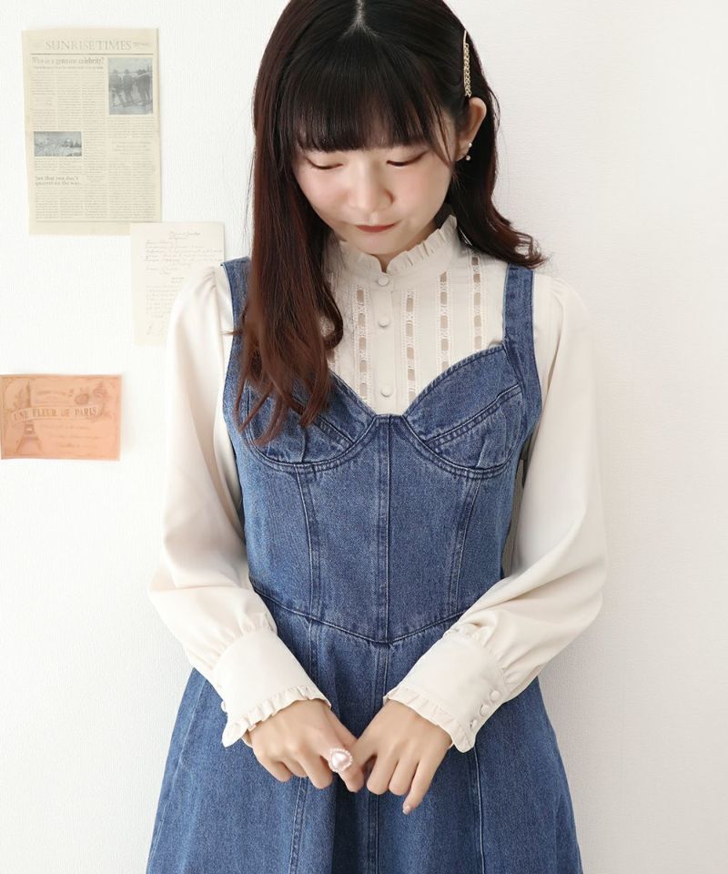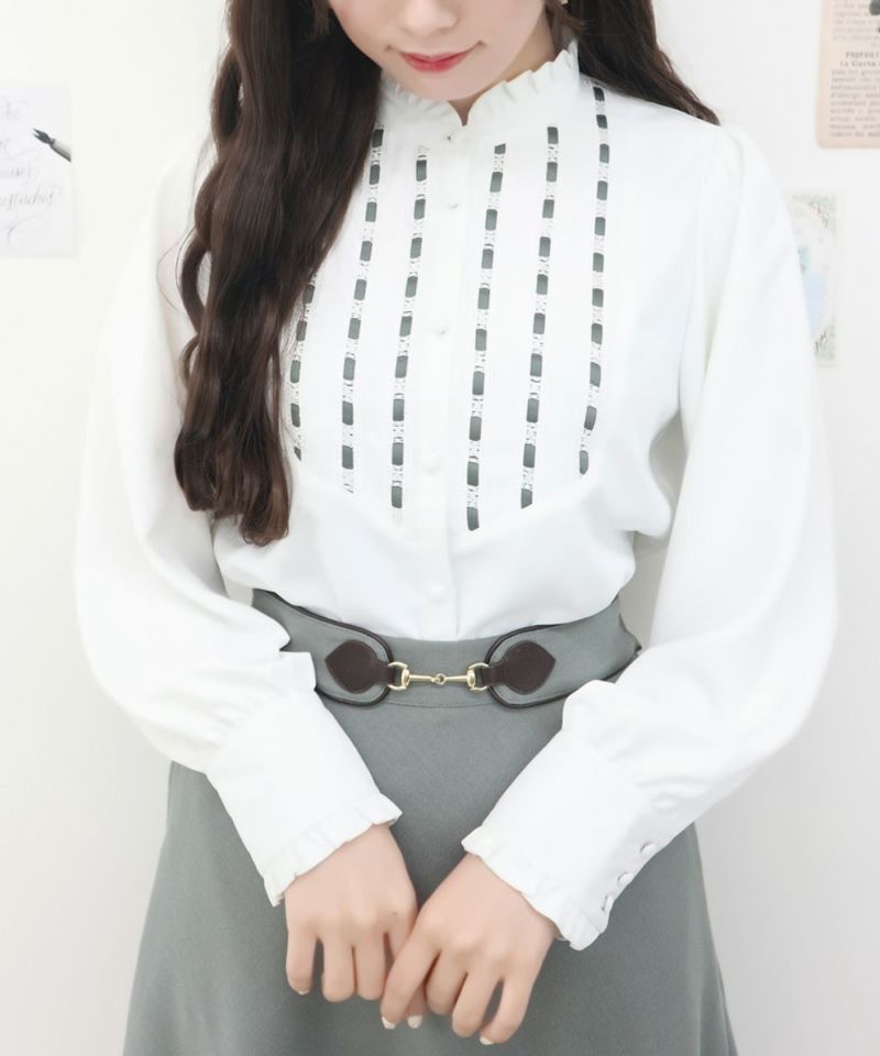 はしごリボンヨーク切替シャツ/an another angelus [37BF01j005]