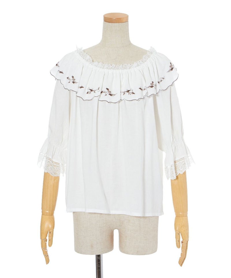 ローズ刺繍オフショルブラウス/an another angelus [38BF02h016]