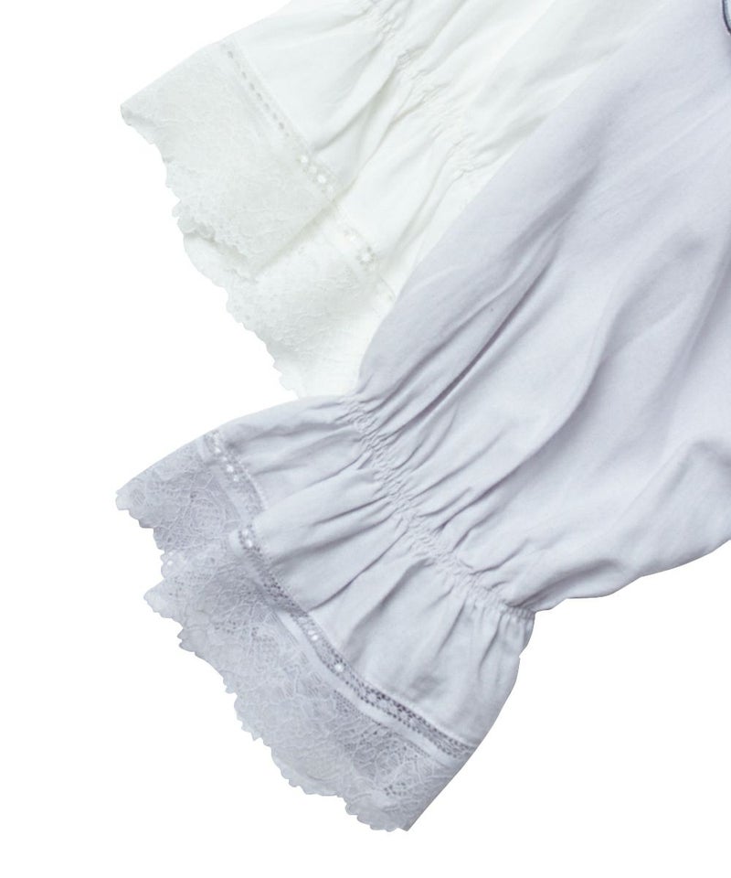 ホワイト購入。柔らかい生地感で、繊細な刺繍と大きな襟元と袖にも繊細なレースがついていて、とてもかわいいです。