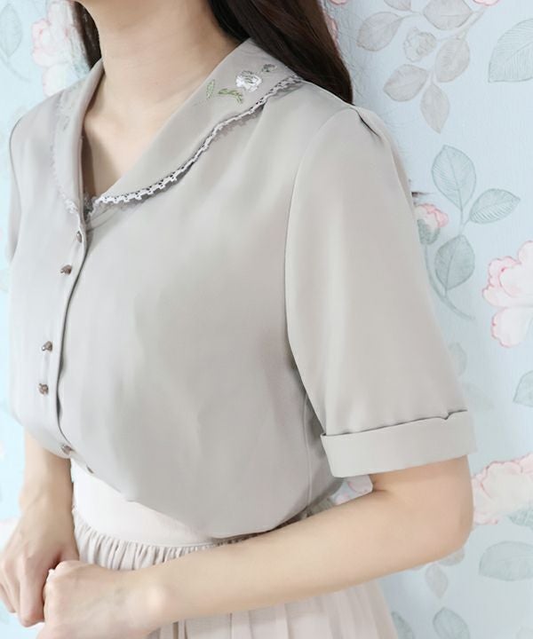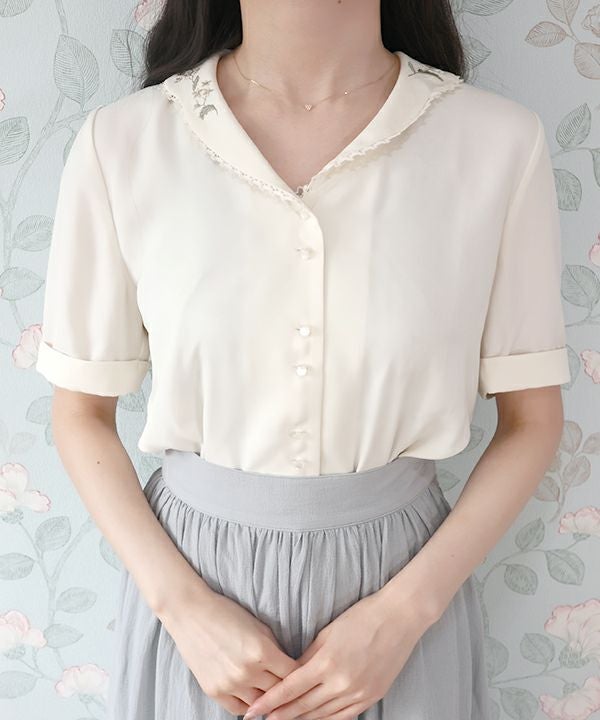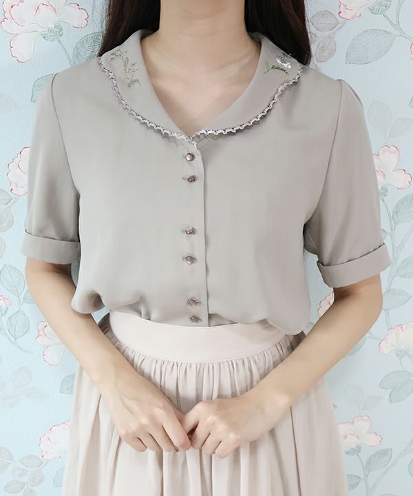 草花刺繍開衿ブラウス/an another angelus [38BF02h021]