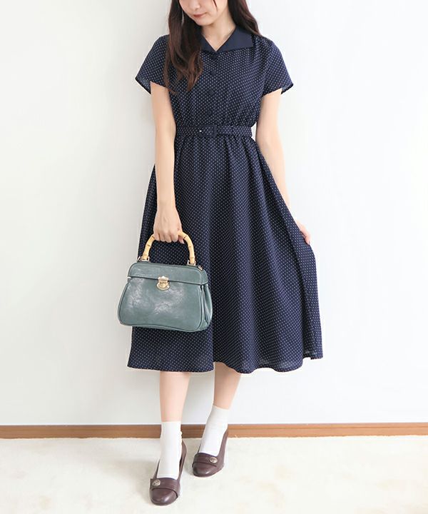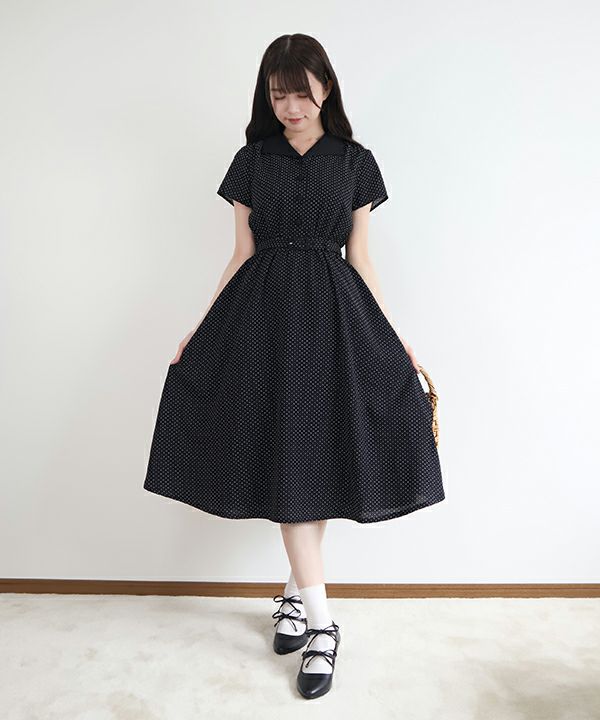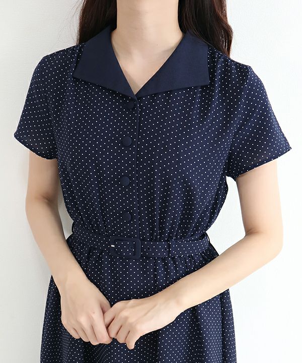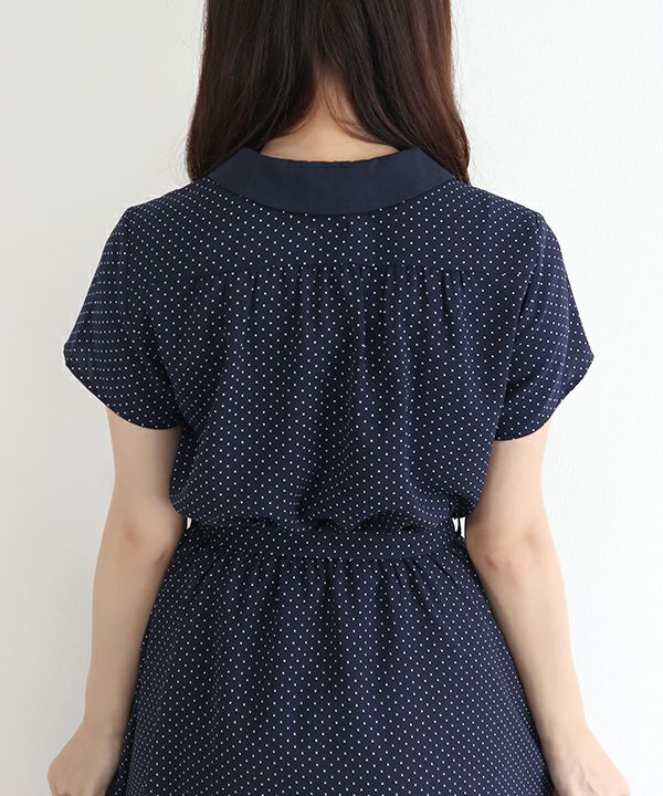 ドット柄フレンチスリーブワンピース/F&A [38CE02g006]