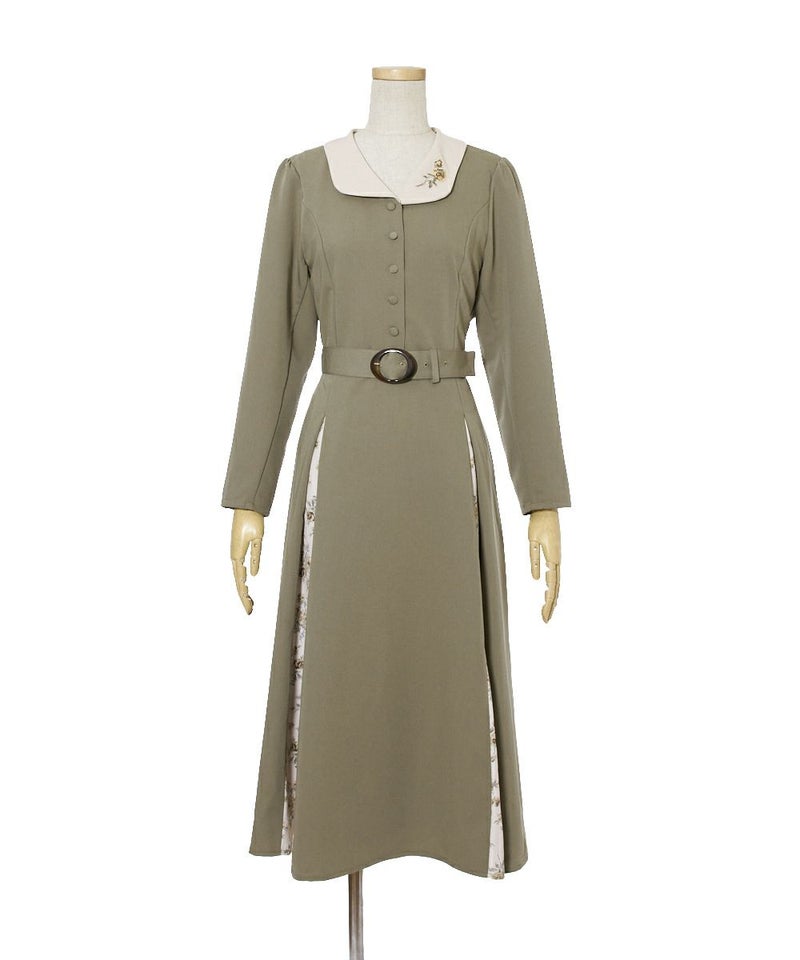 olivegreenを購入しました。襟元の刺繍も、歩くたびに見えるスカート部分の花柄もとても素敵です。