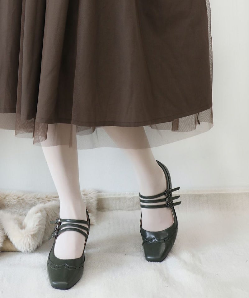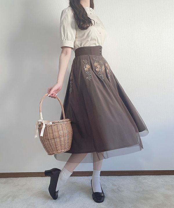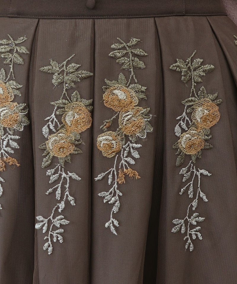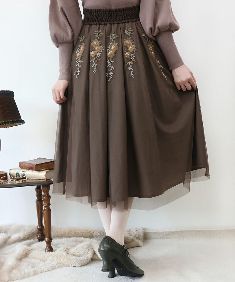 アンティークローズ刺繍チュールタックスカート/an another angelus [39BG03p003]