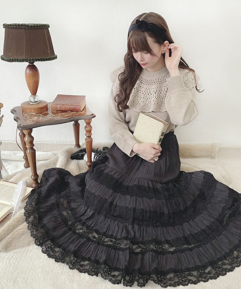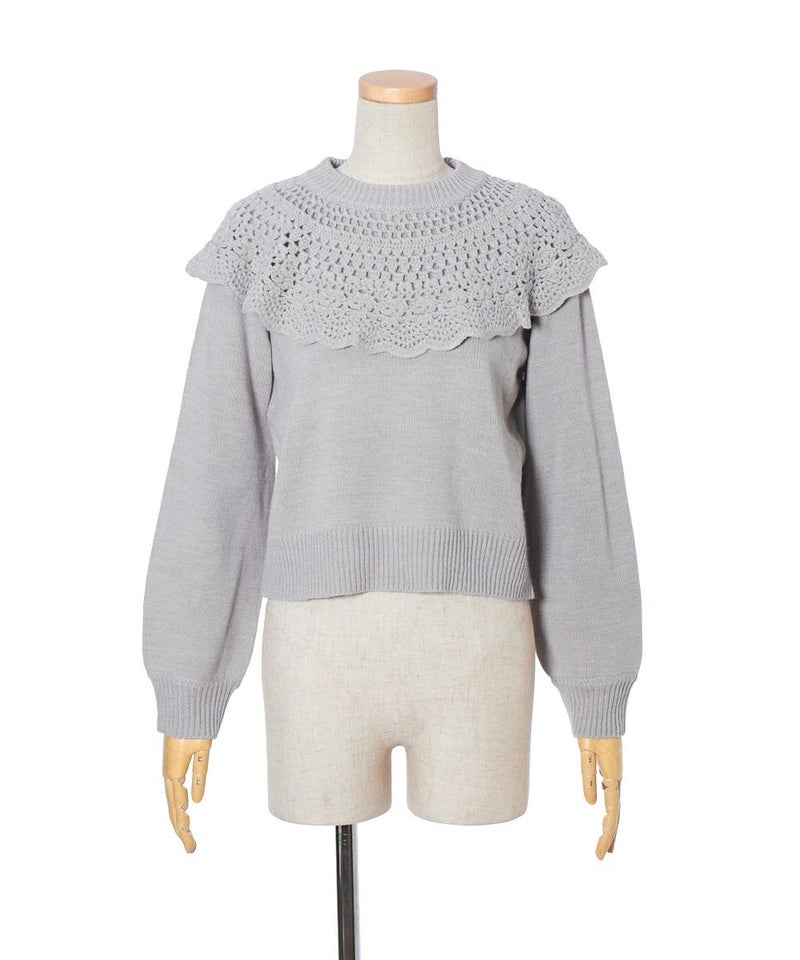 ドイリー風ケープ付きニットプルオーバー/F&A [39CJ03j001]