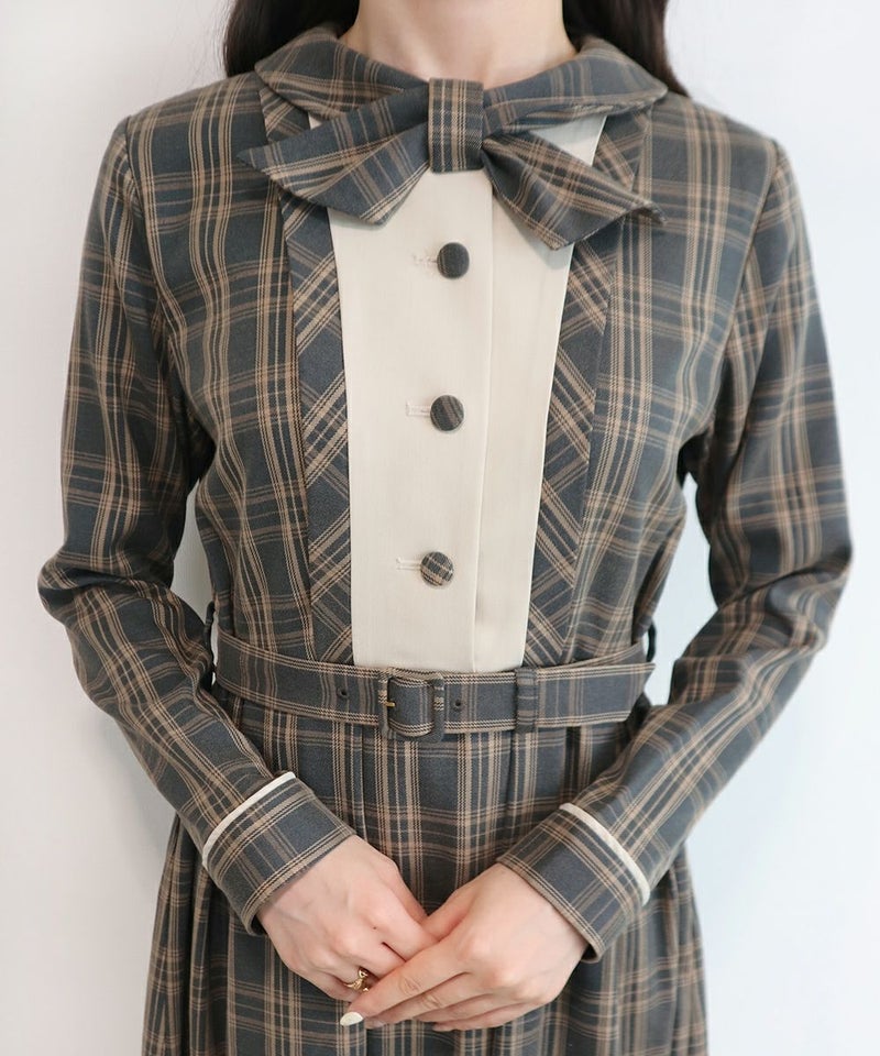 ヨーク切替ボウタイチェックワンピース/F i.n.t [40AE02j016]
