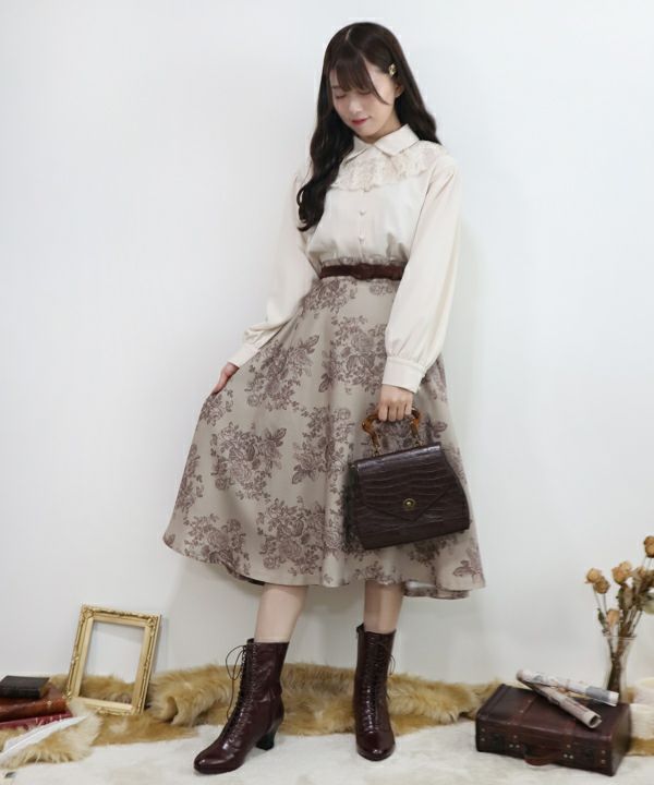 単色ローズプリントサーキュラースカート/an another angelus [40BG02p015]