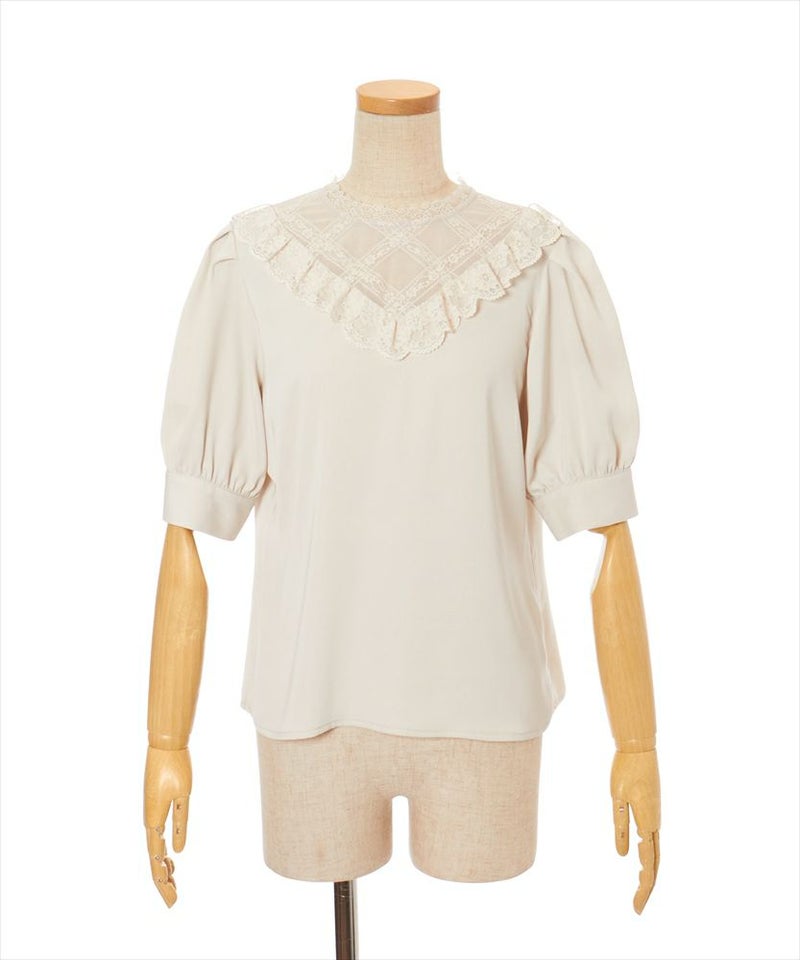 レースチェックヨーク透けプルオーバーブラウス/an another angelus [41BF02h003]
