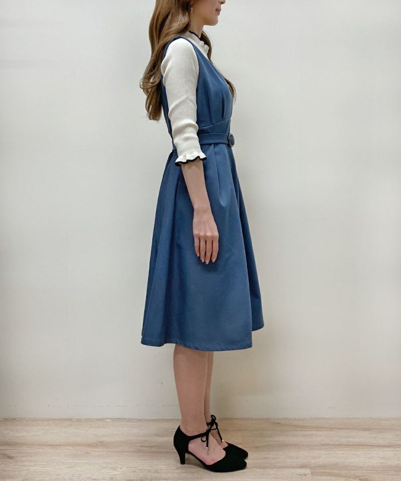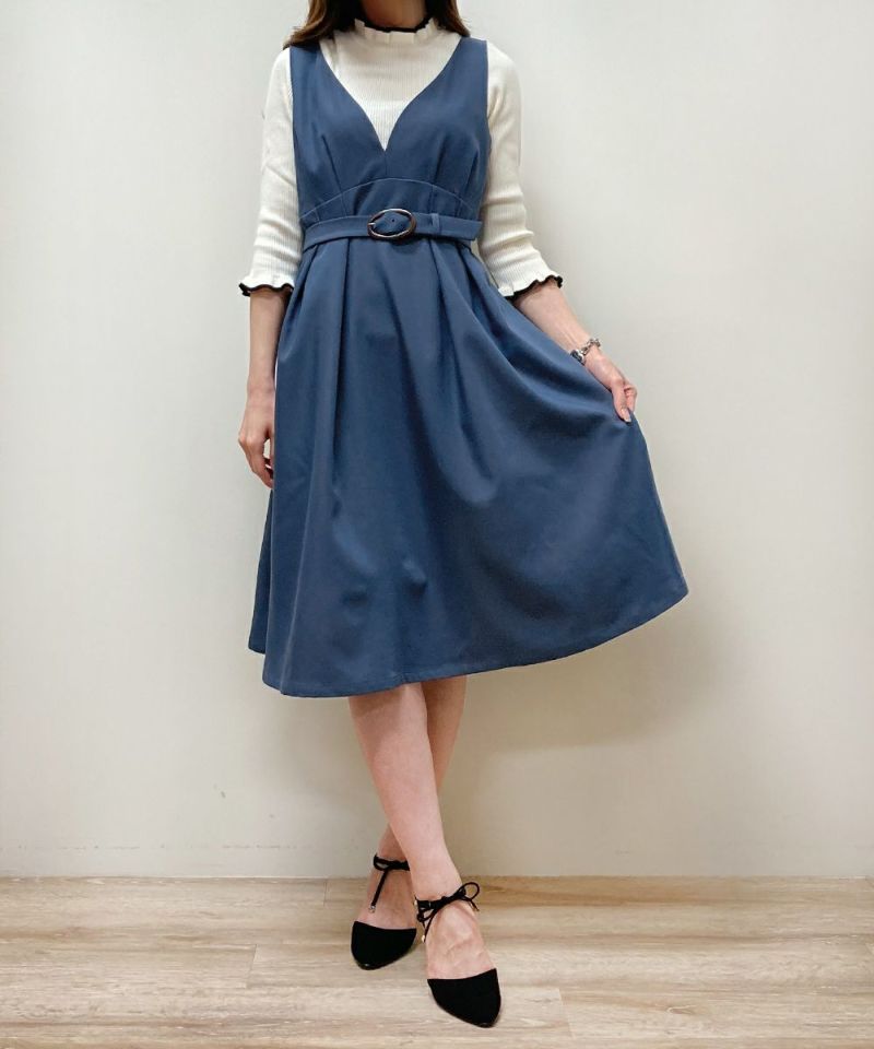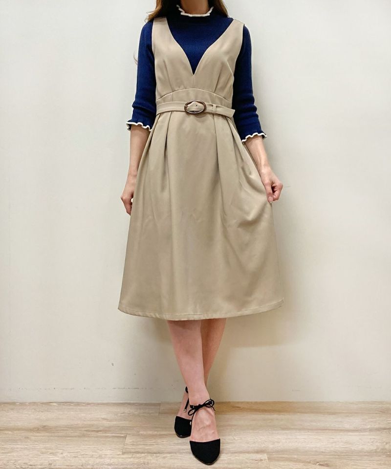 べっ甲バックルベルトVネックジャンパースカート/F&A [41CE04f001]