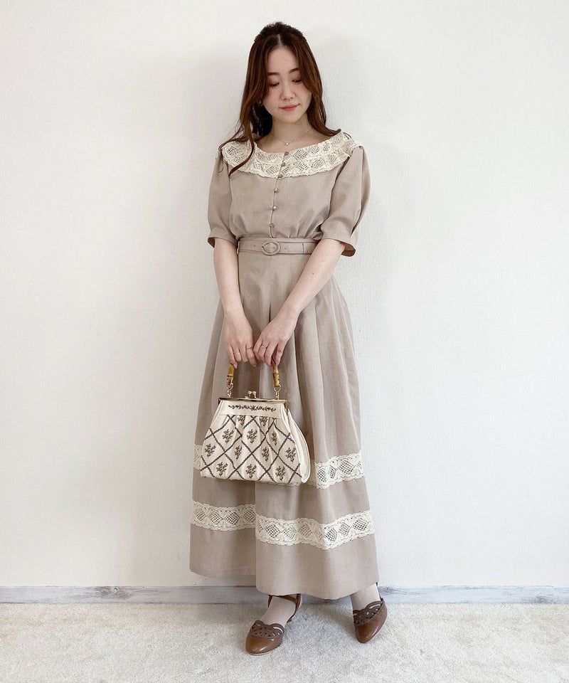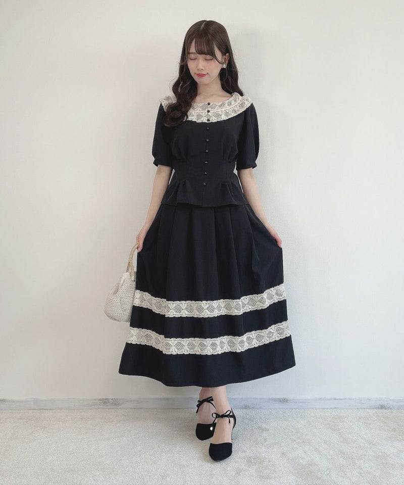 なかなかないデザインです。胸元は意外と開きますが、レースに重みがあるので、気になりません。