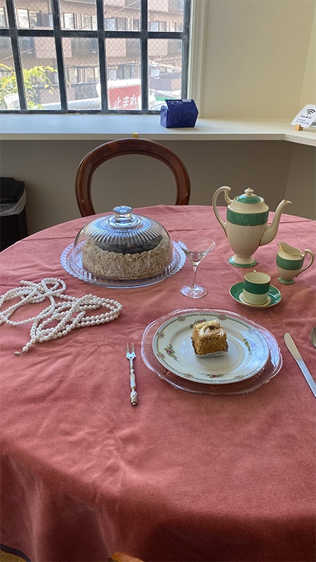 赤いニットが同化してしまう…ということで別の椅子を探して、