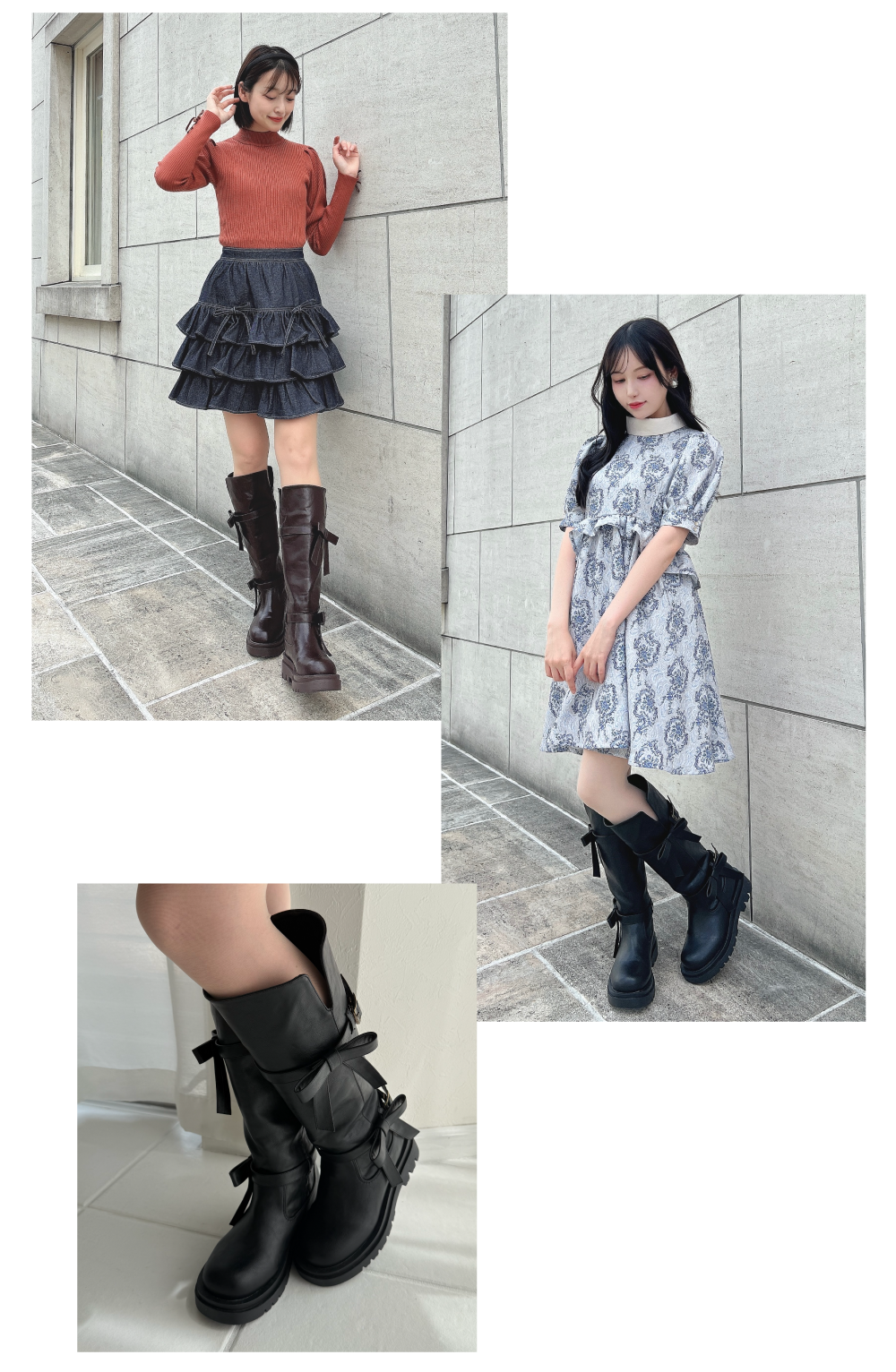 ダブルリボンベルトロングブーツ