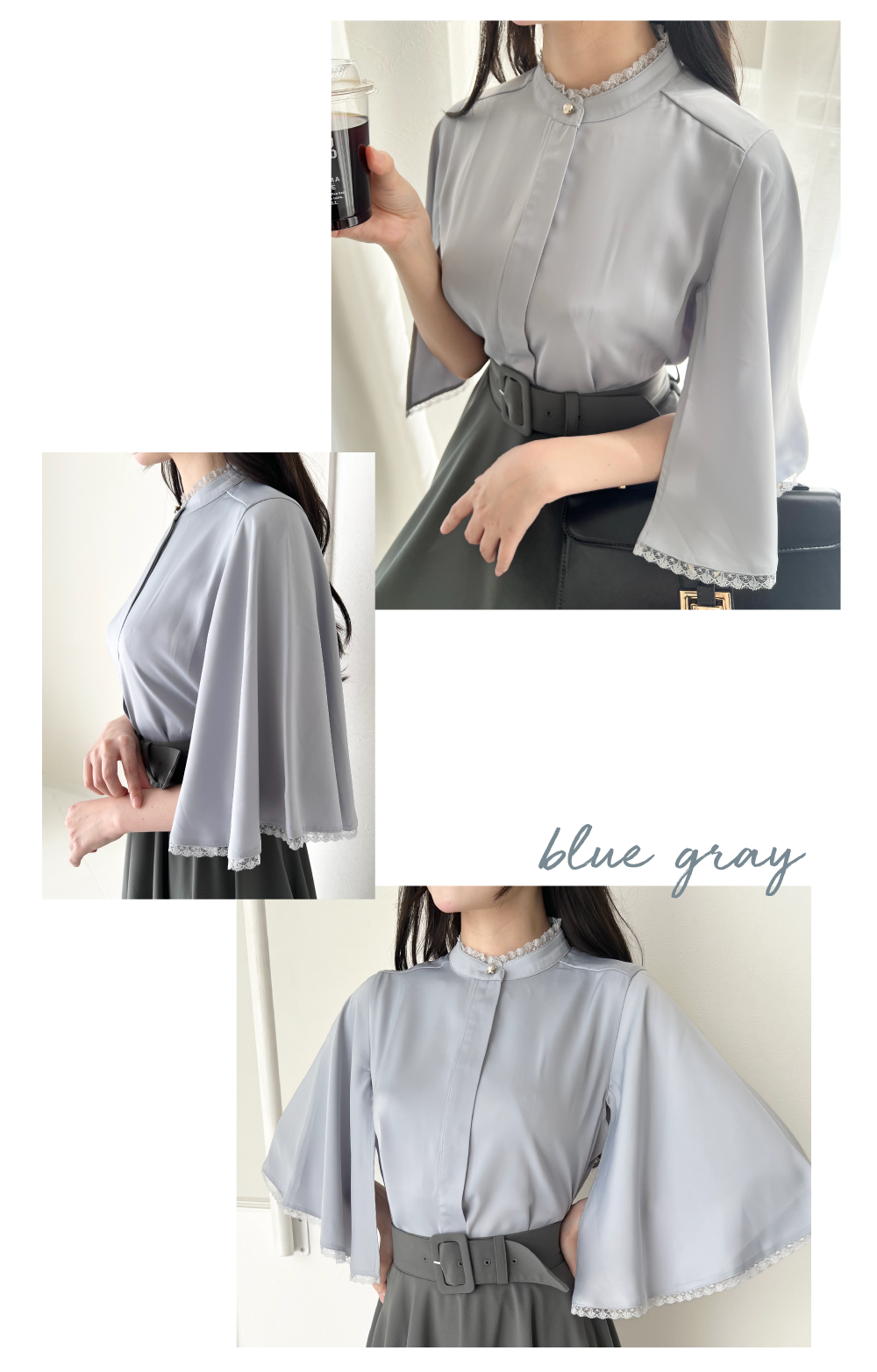 レース使いケープスリーブブラウス