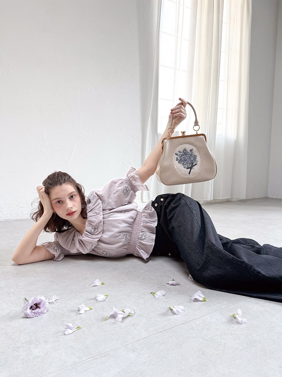 フレームスミレ刺繍がま口バッグ/an another angelus ¥13,200 tax in