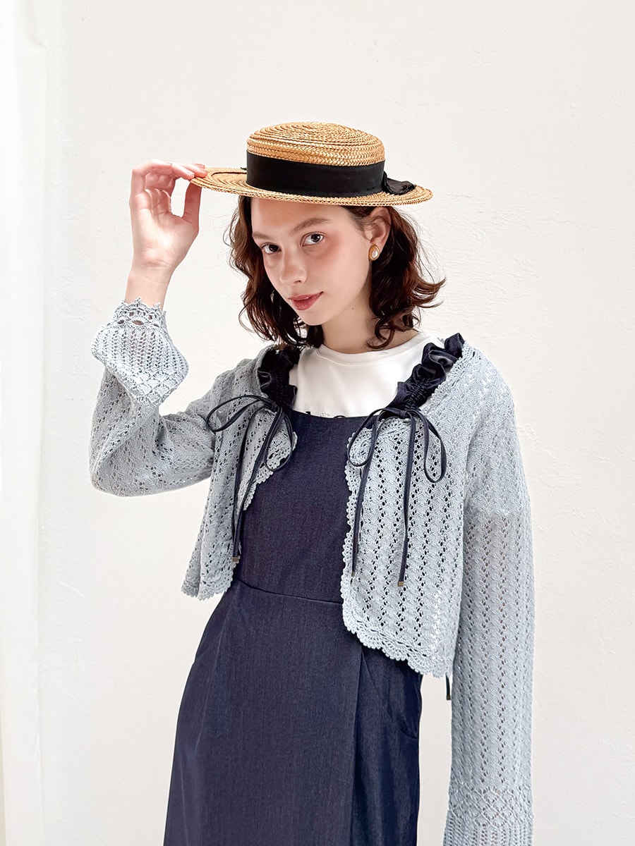 クロシェスカラップ透かし編みニットボレロ/an another angelus ¥8,910 tax in