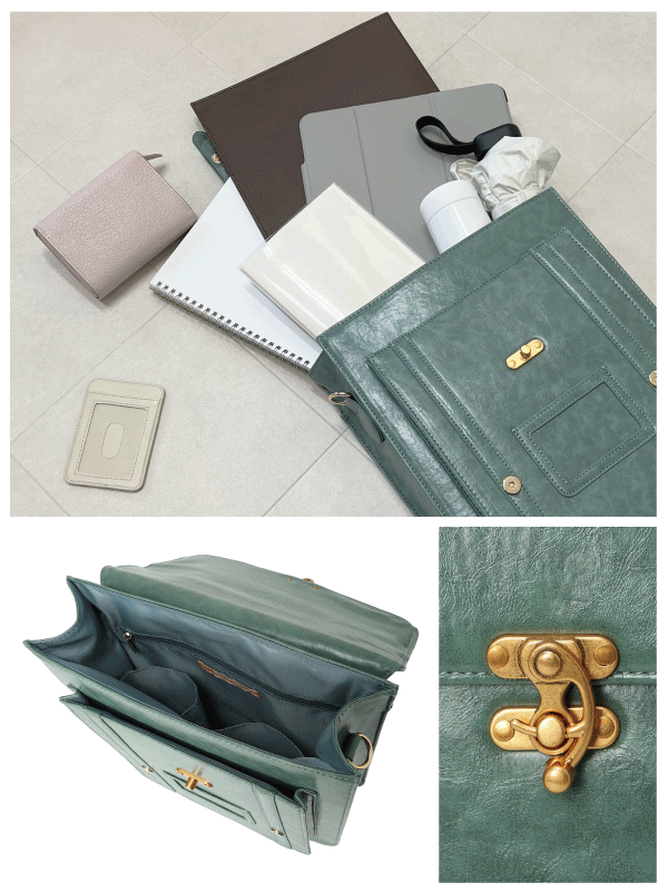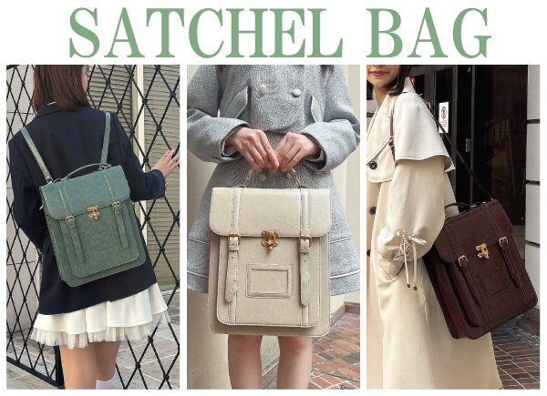 ダブルベルト縦型サッチェルバッグ ¥11,880(tax in) blue green / light beige / brown スマートな縦型が新鮮なサッチェルバッグ。 手提げ、斜めがけ、リュックタイプの3wayで 気分に合わせて楽しめちゃいます!