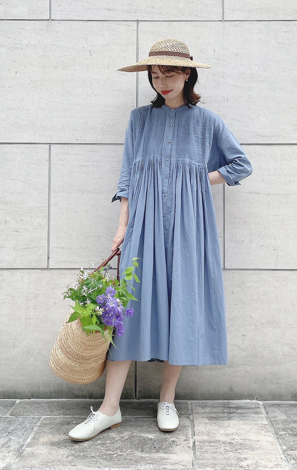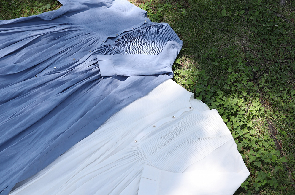 Pintuck volume shirt dress