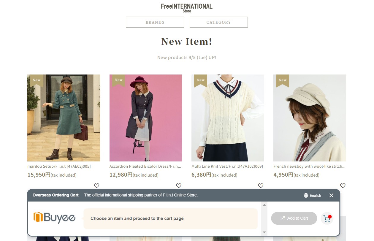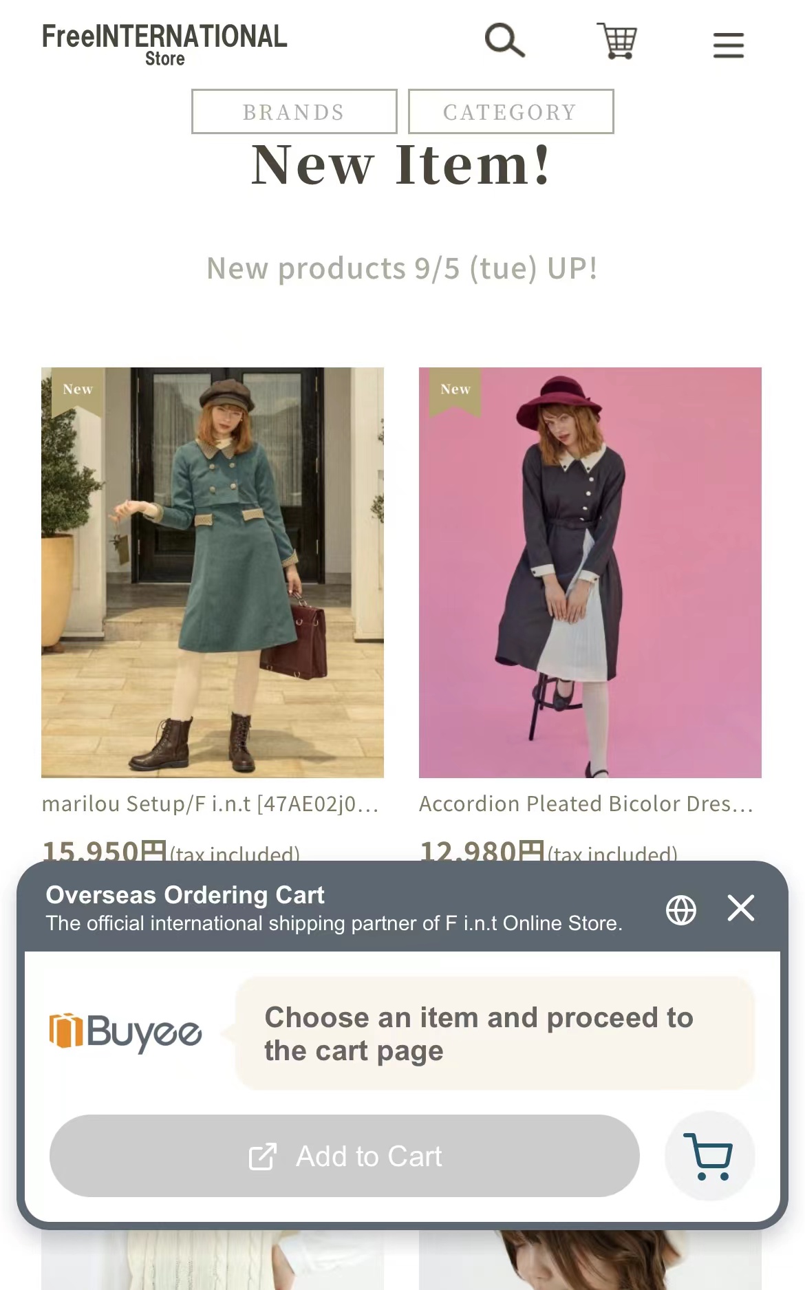 海外からアクセスすると、自動的にBuyee「海外注文用カート」が表示されます。