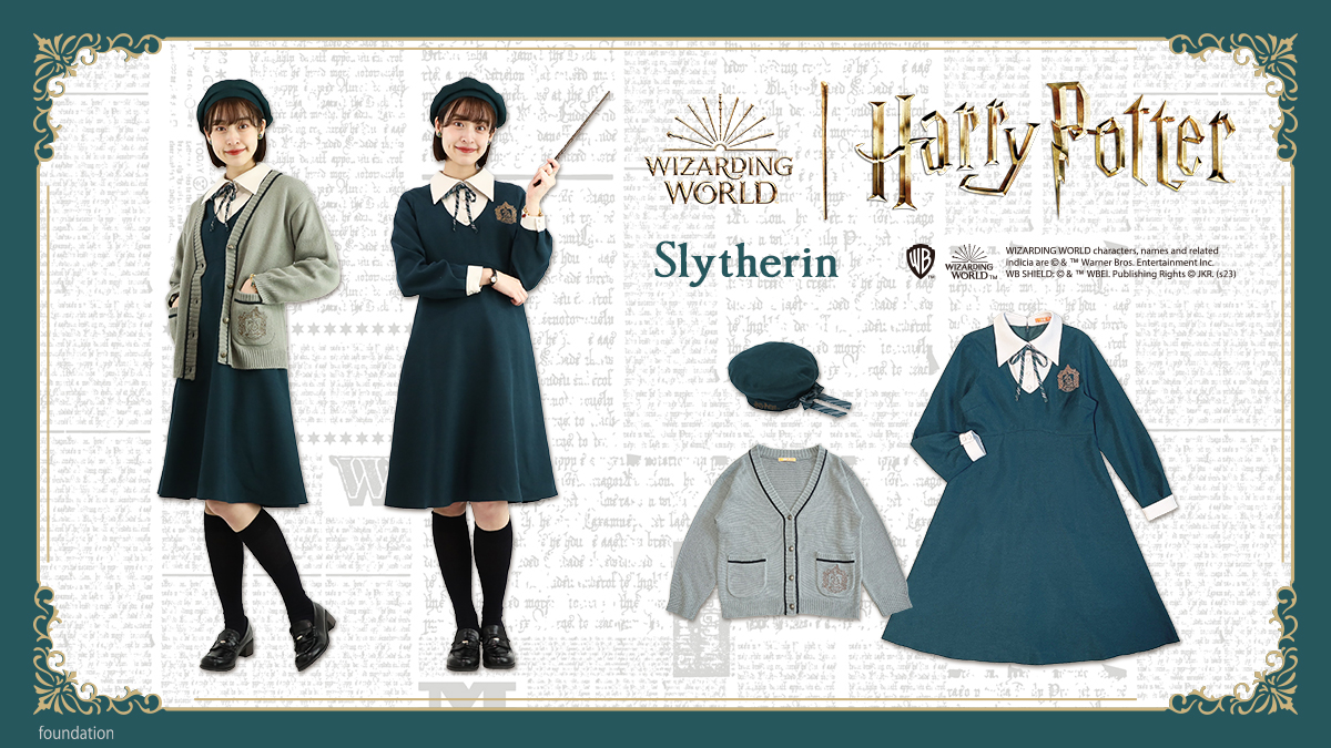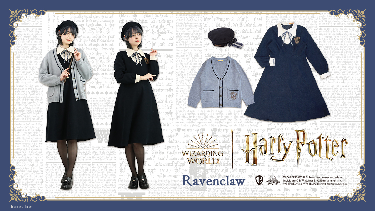 F i.n.tから『ハリーポッター』スペシャルコレクションが登場! ホグワーツの4つの寮をイメージしたワンピース、カーディガン、ベレー帽の3種類のラインナップ。 それぞれの寮イメージのトータルコーデが楽しめるコレクションです。
