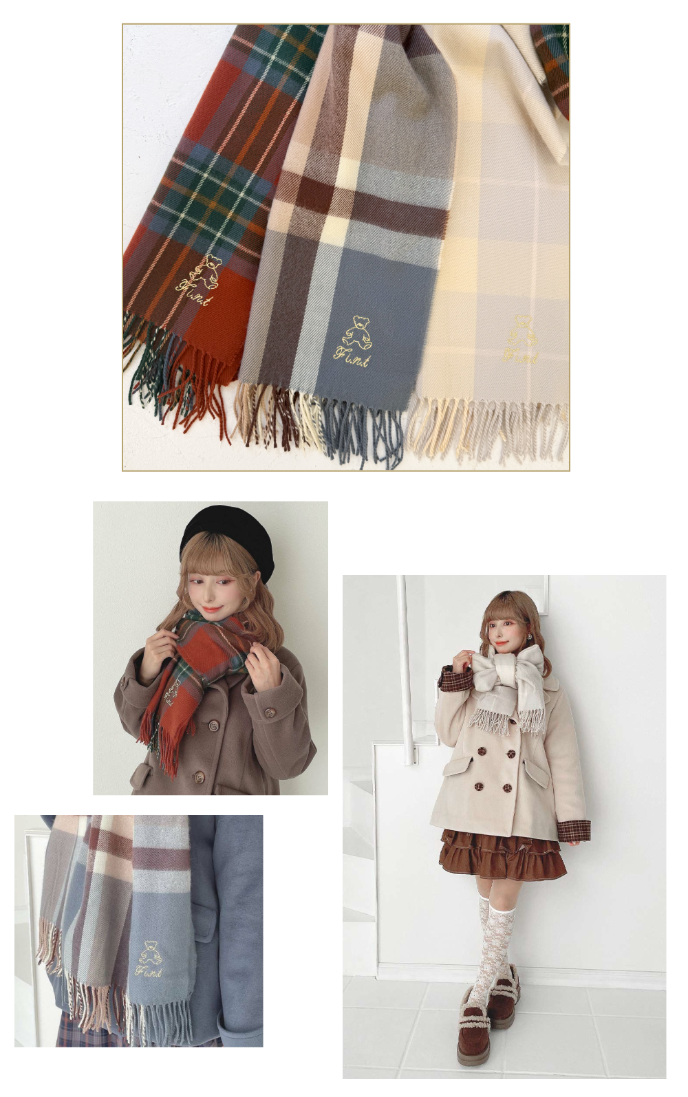 チェック柄のストールやキャッチーなバッグなど