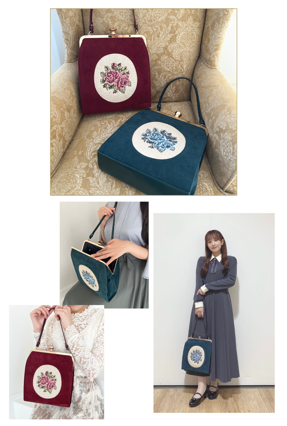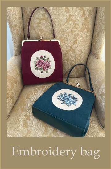 カメオローズ刺繍スクエアがま口バッグ