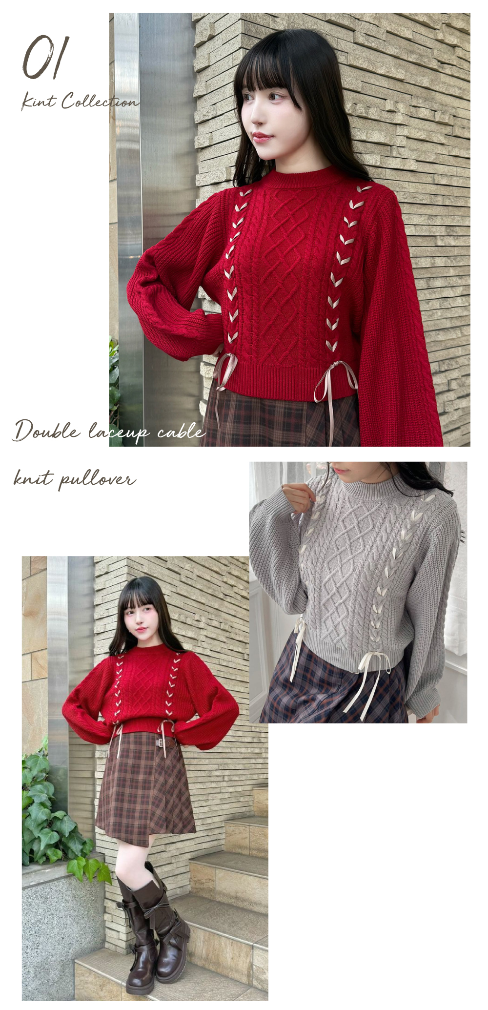 ダブルレースアップケーブルニットプルオーバー