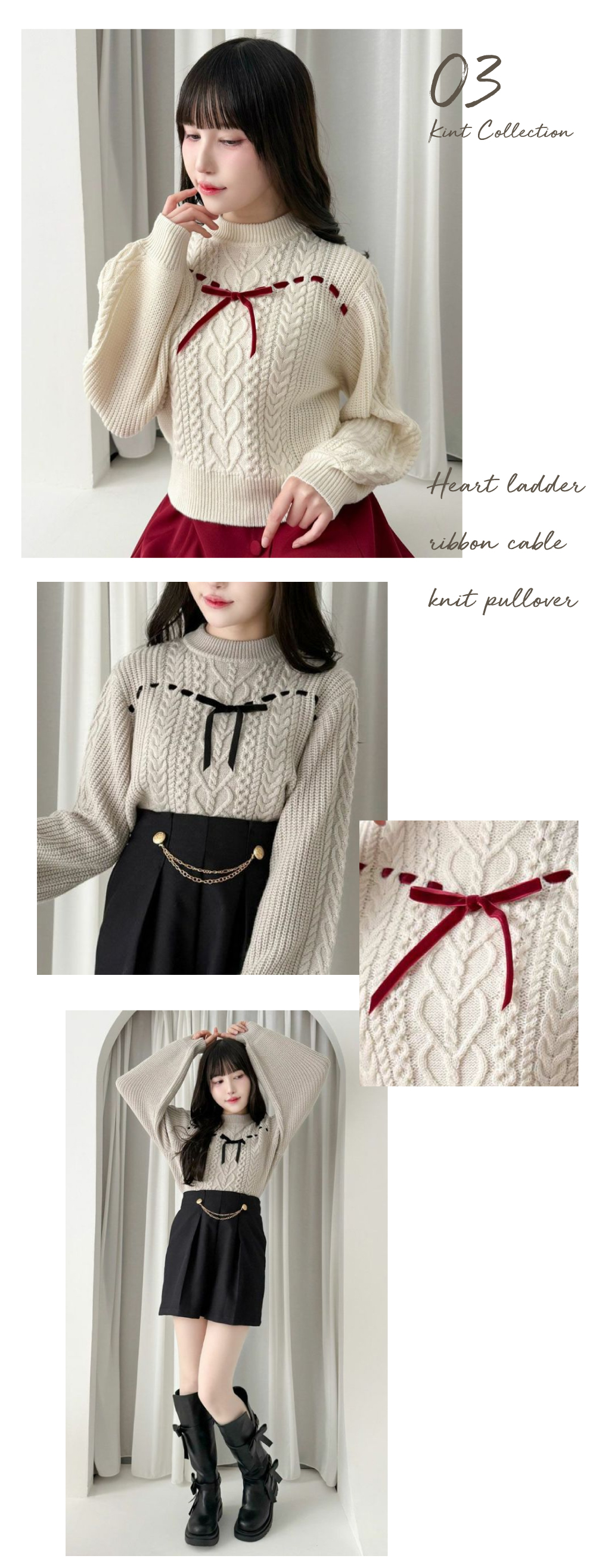 ハートはしごリボンケーブルニットプルオーバー