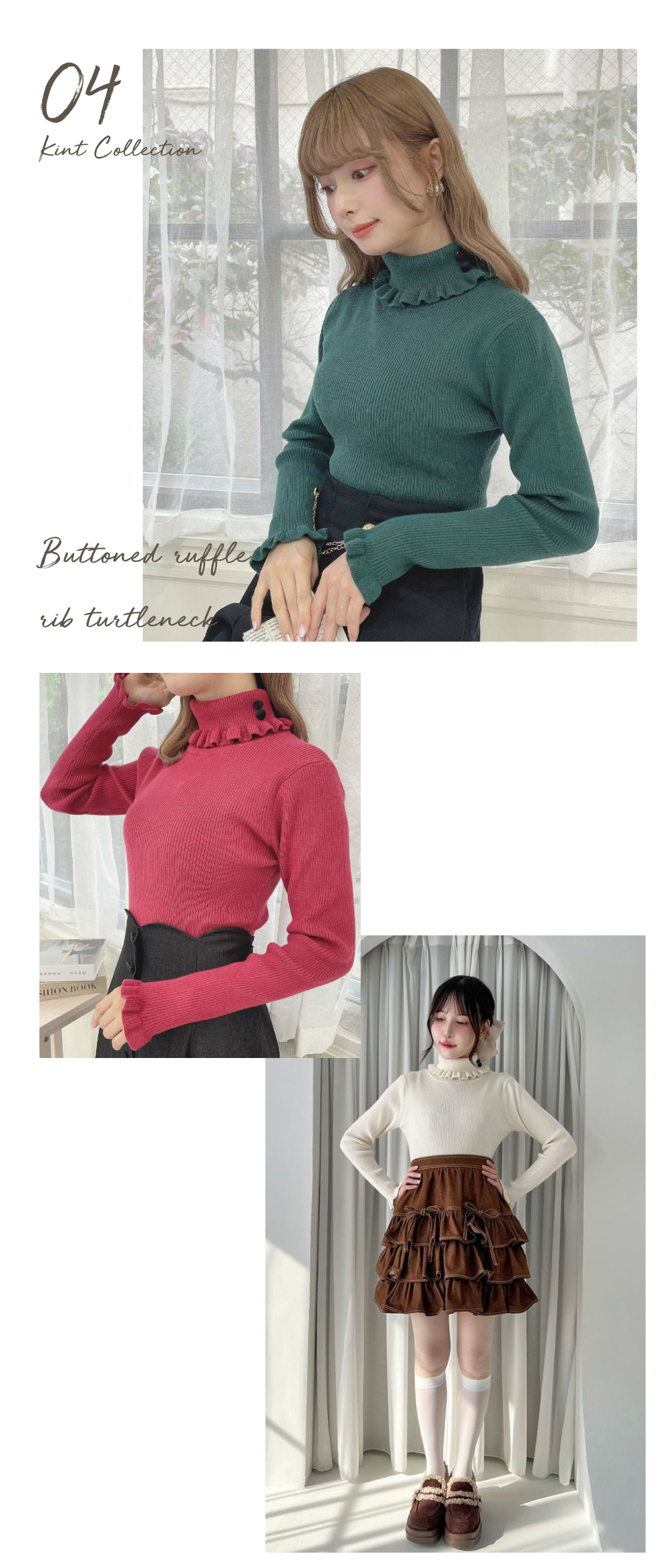 釦付きフリルリブタートル