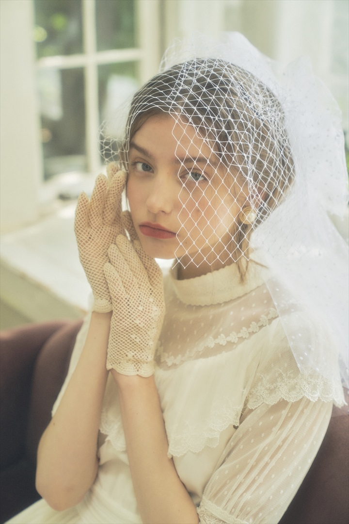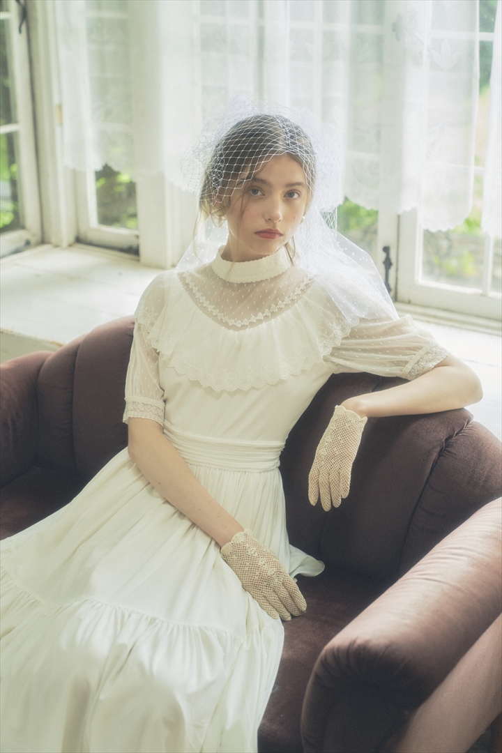 繊細な透け感のドットチュールを使用したヨークとお袖で