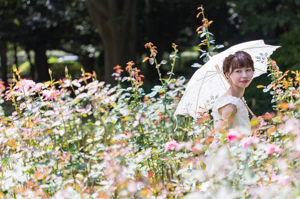森林公園の中で、自然の太陽や、その時に出会える花々に囲まれて撮影したい方へオススメのプランです。