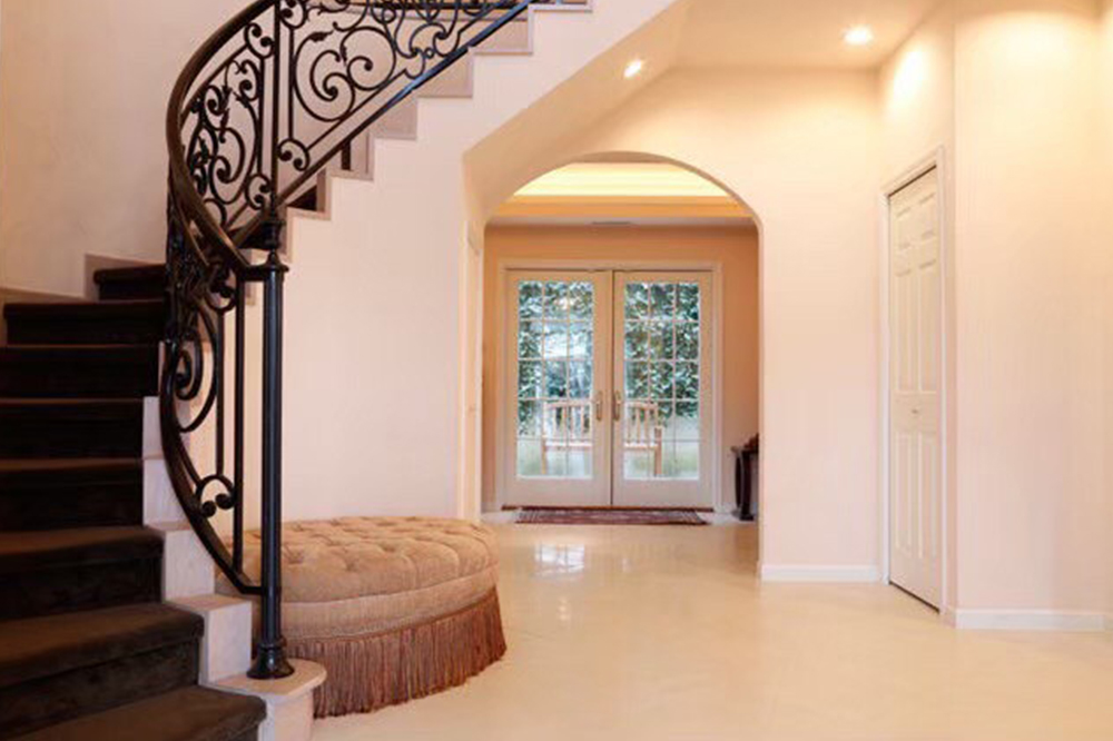 ロココ調の家具、蔦のような螺旋階段、エントランスの階段には、