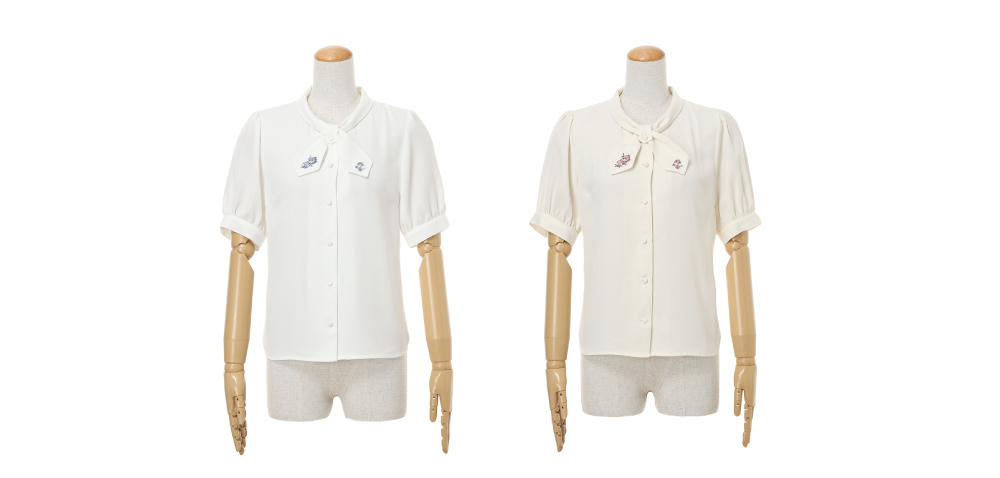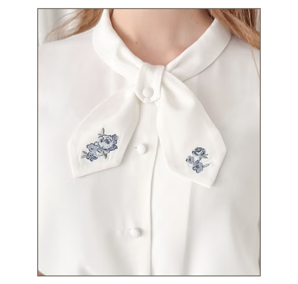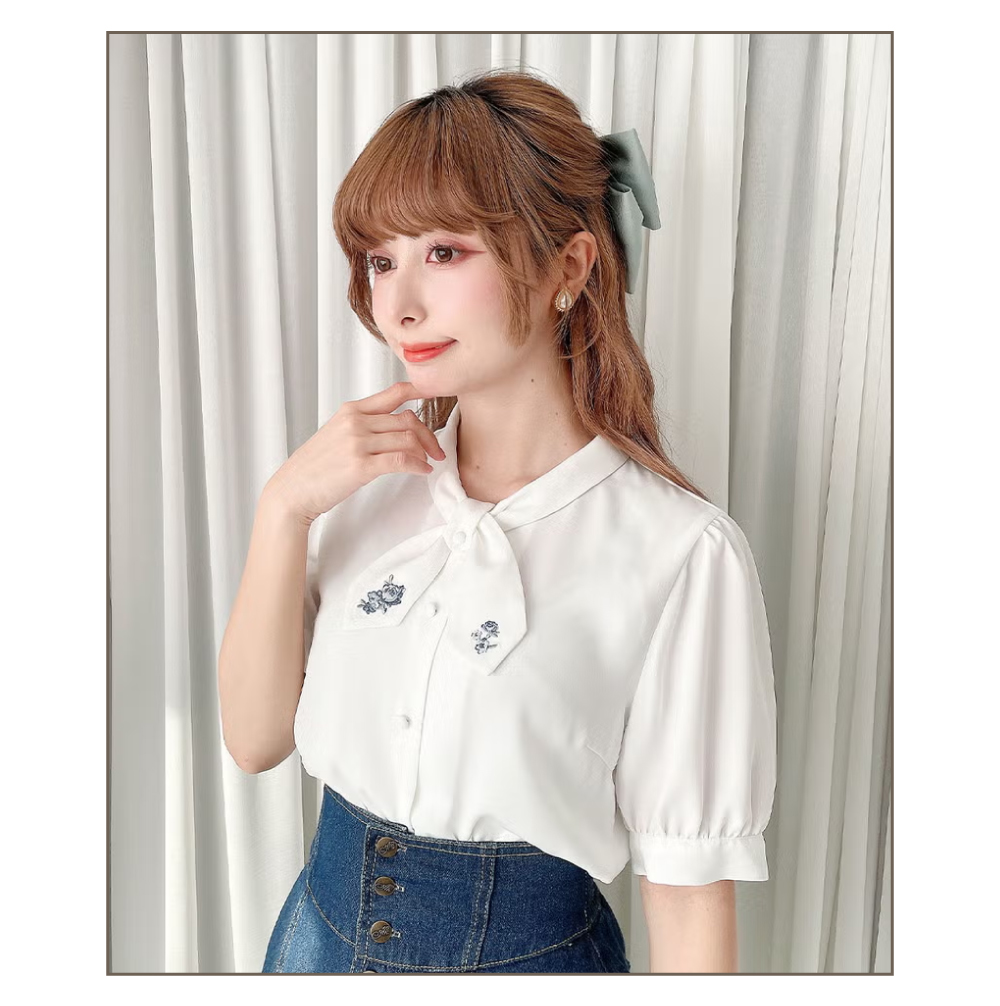 タイにあしらった小花刺繍がキュートなブラウス♡