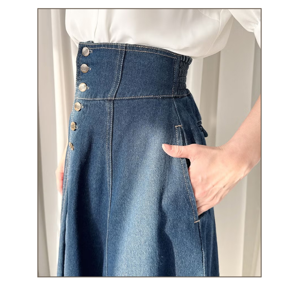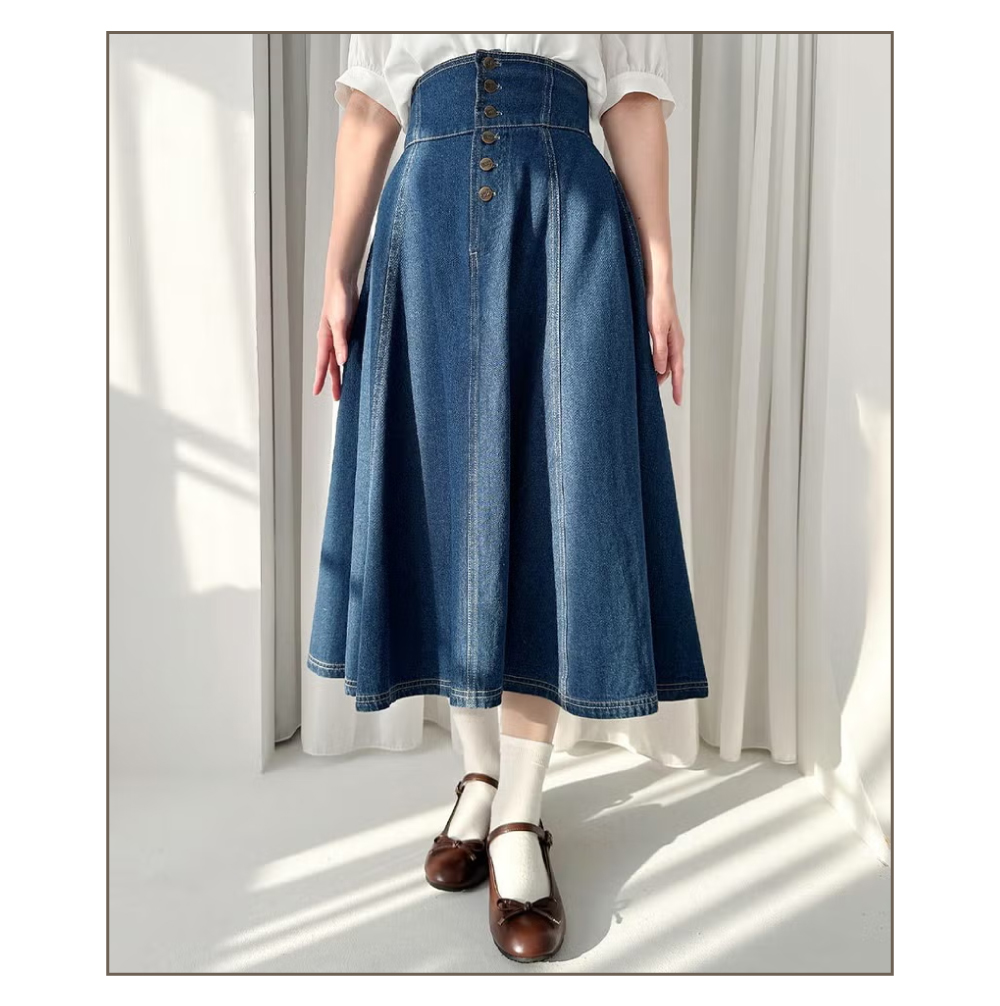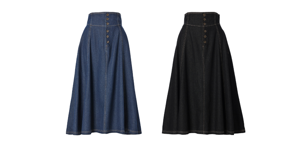 デニム素材では珍しい、美シルエットのフレアースカート。