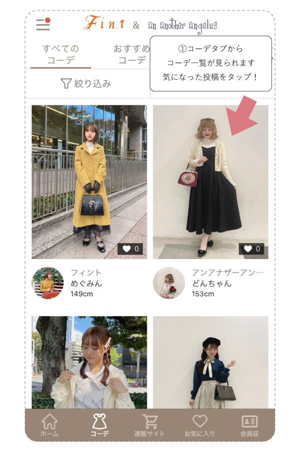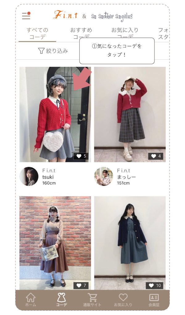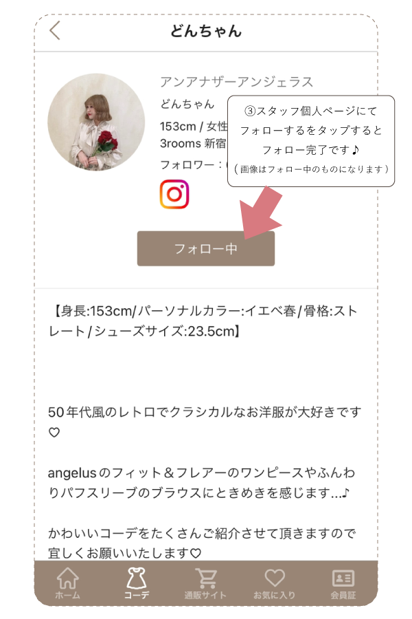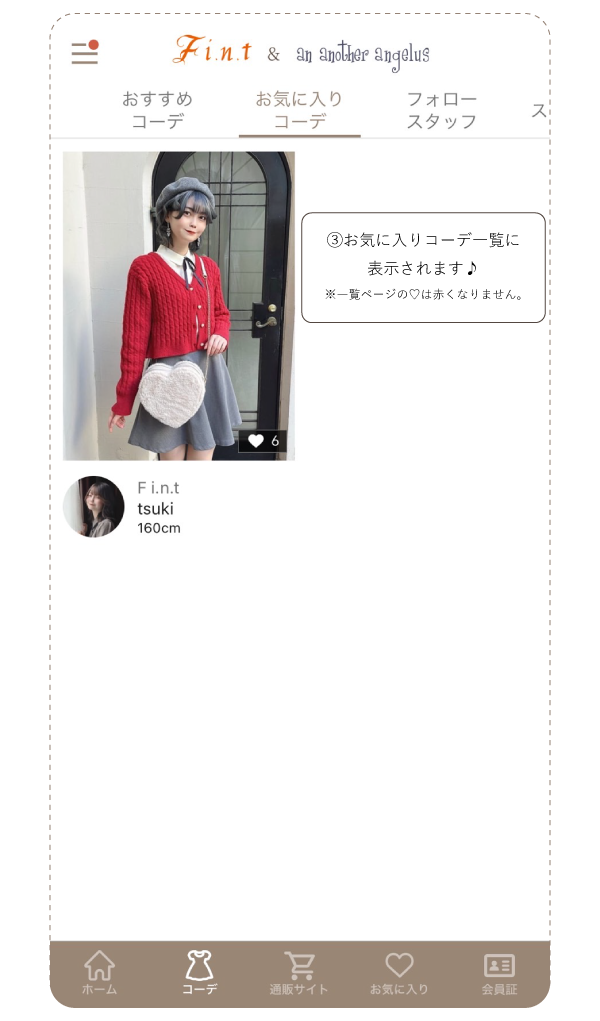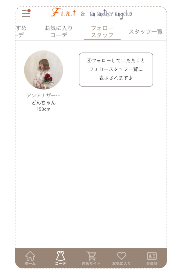 ※スタッフフォロー機能・お気に入りコーデ機能は アプリのみになります。