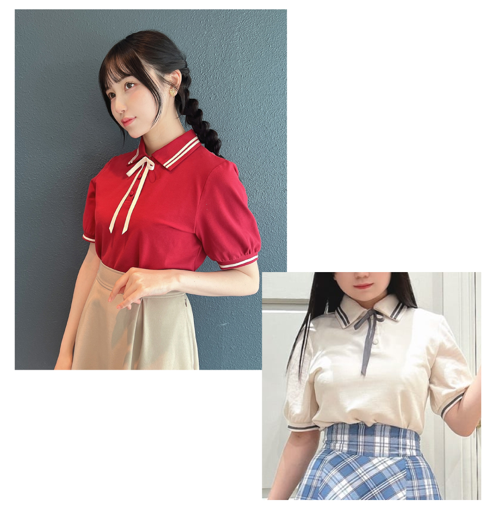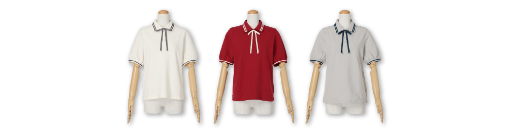 リボンタイ付きライン入りポロシャツ