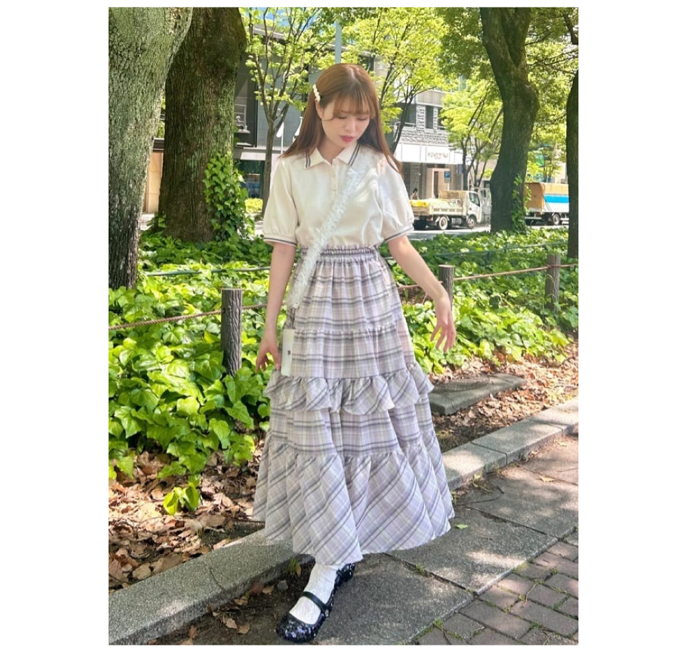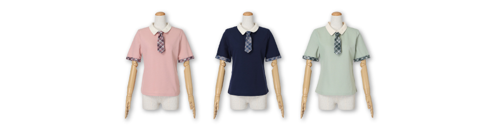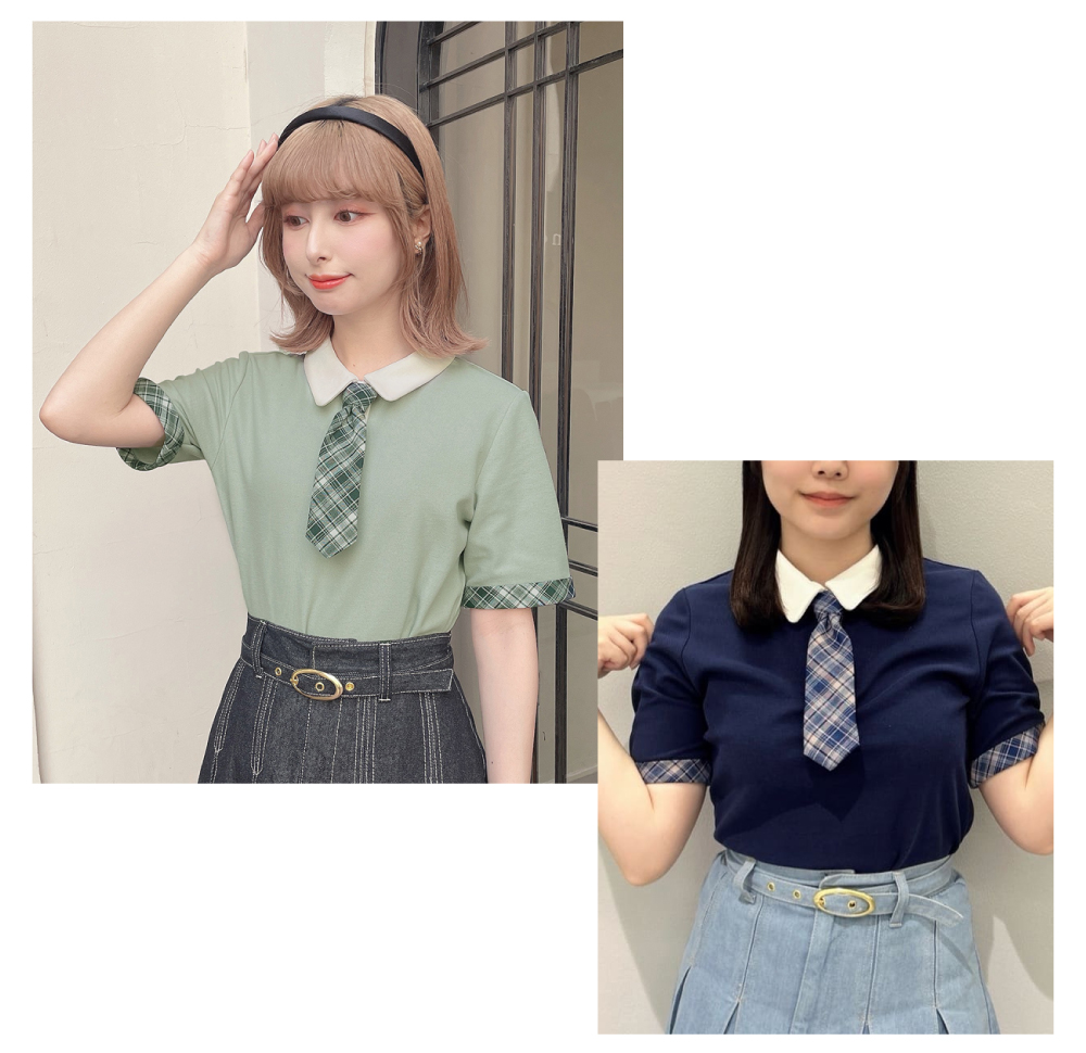 チェックネクタイ付きクレリックポロシャツ