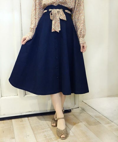 シンプルなトップスでも、合わせるとトレンドライクになるデニムスカート♪ 小花柄のリボンはフロントのみ通っているデザインになっています。(後ろ側まで一周していません) ウエストは、私は158cmで普段Mサイズを着用しますがぴったりフィットしてすっきり見えるサイズ感でした! 硬すぎずやわらかめのデニムの素材感が着心地良いです(^^) スニーカーでも合わせやすいので、カジュアルさんにもガーリーさんにもおすすめです!