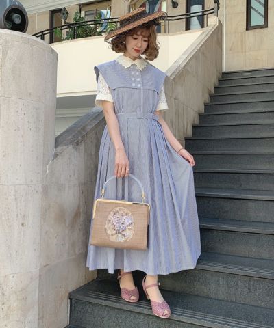 《Vintageムードたっぷり》 ロング丈なので身長152cmの私で足首あたりです。ウエストベルトは穴がついているタイプでジャストに調節できます。スクエアケープは肩に少しかかるくらいでとってもレトロ♪ ケープの下の肩幅は大きすぎず小さすぎず。普段小さめ~Mサイズを着ますが大きいとは感じないサイズ感でした◎ 重ね着するのもとってもおすすめです。さらっとした薄手のブラウスなら中に着てもゴワつかず◎カーディガンを羽織ってケープを出してあげるのも素敵です♪ ノースリーブなので重ね着のアレンジ次第で何パターンも楽しめました\(^^)/