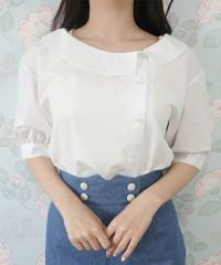 襟ぐりが広めなので、ボタンを外さなくても頭からすっぽりかぶって楽ちんに着脱できます。